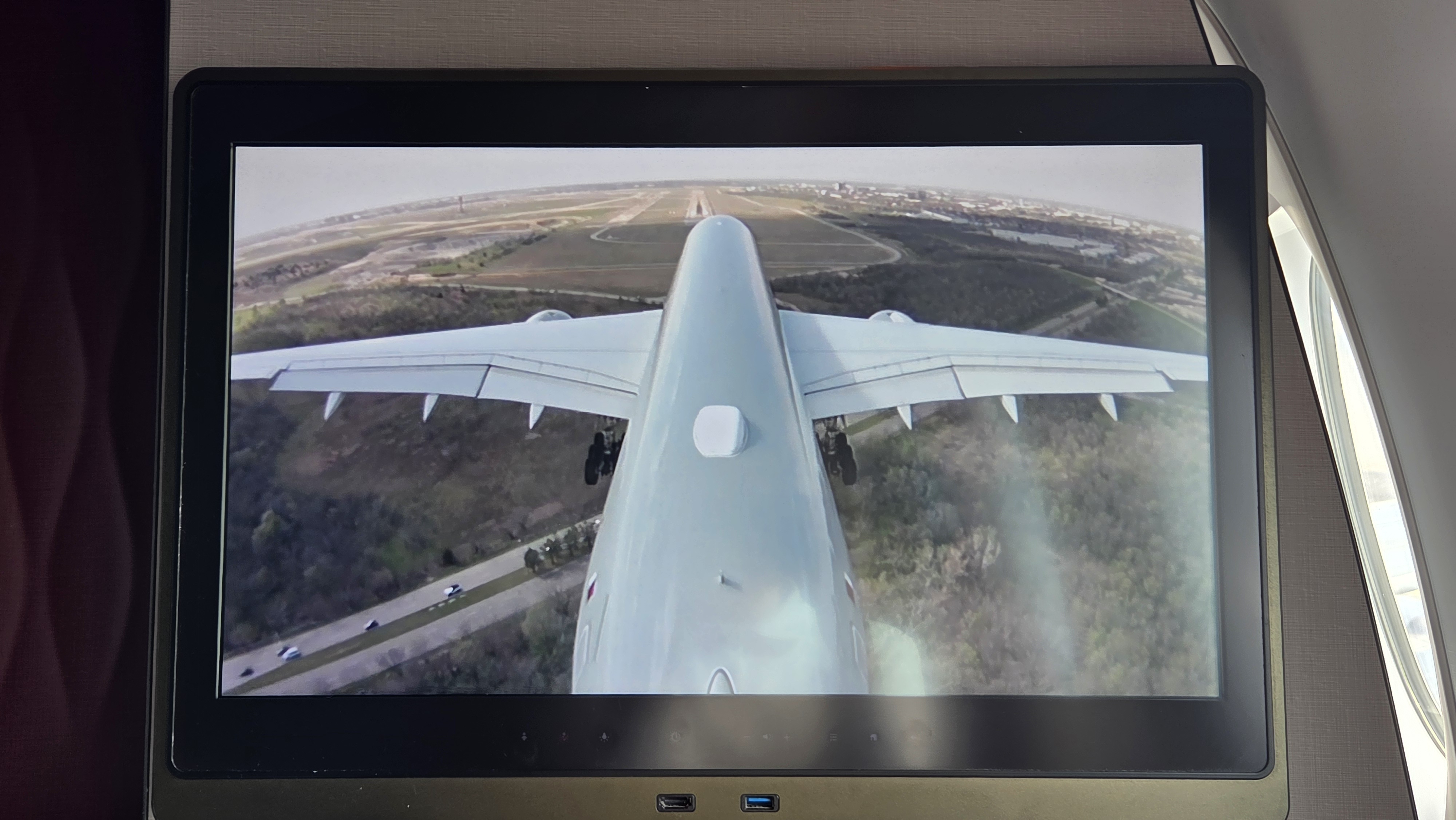카타르 항공 QR729편 최초 착륙 시도와 두번째 착륙 시도 QR729편이 랜딩을 하던 시간에 댈러스 포트워스 국제공항에는 바람이 강하게 부는 상황이었습니다. 따라서 한 번에 착륙하지 못했고, 바람방향에 맞추어 다른 활주로에 2번의 시도 끝에 착륙했습니다. 다만, 안전을 위해서 여유롭게 복행을 한 거라 기내에 있으면서 불안하거나 이런 점은 없었고, 카타르 항공의 A350-1000은 기내 엔터테인먼트 모니터를 통해 외부 카메라를 볼 수 있기 때문에 이 카메라를 통해 외부 상황을 볼 수 있어 더 괜찮았던 것 같습니다.