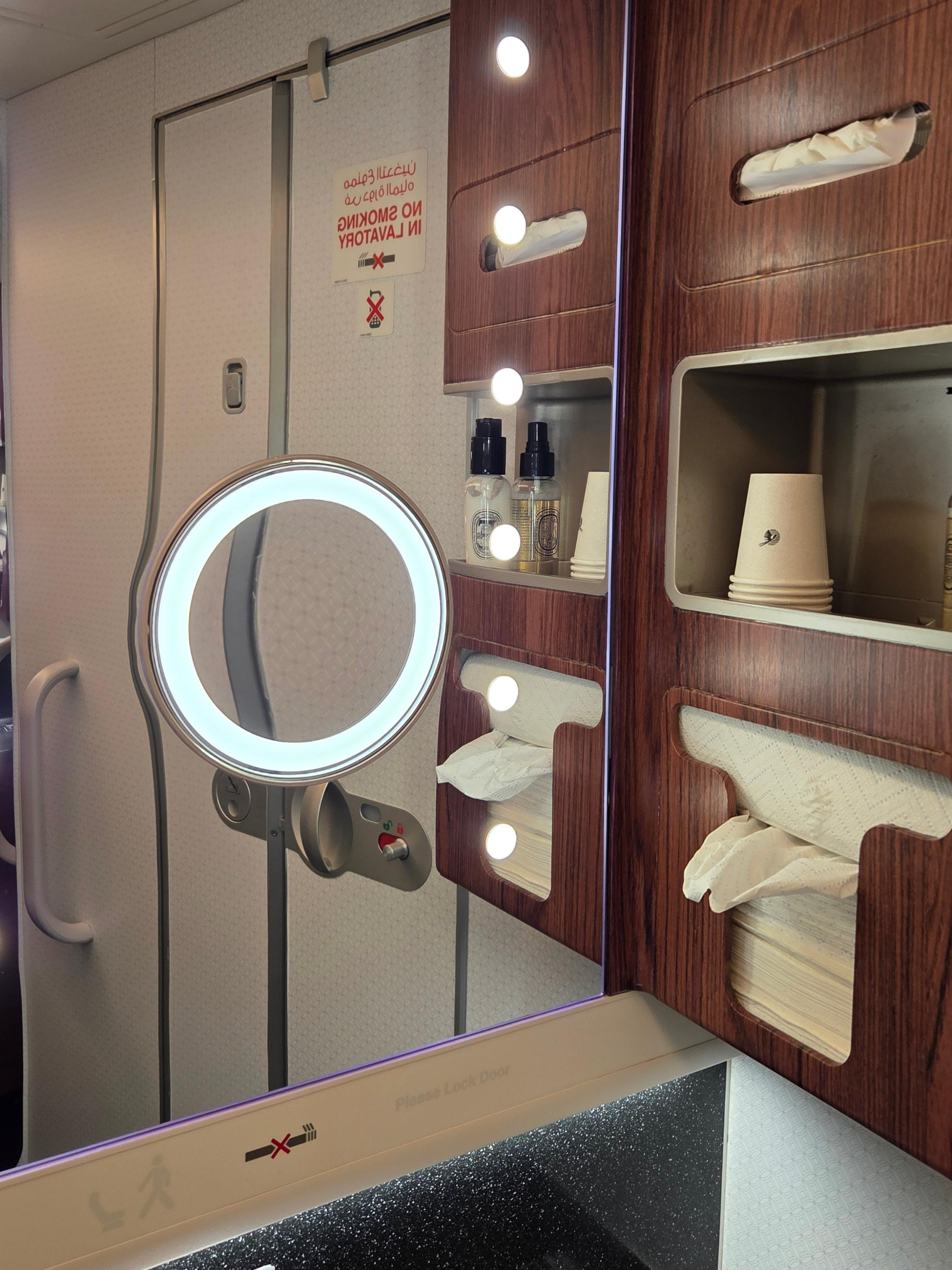 카타르 항공 A350-1000 비즈니스 클래스 전방 화장실 어매니티