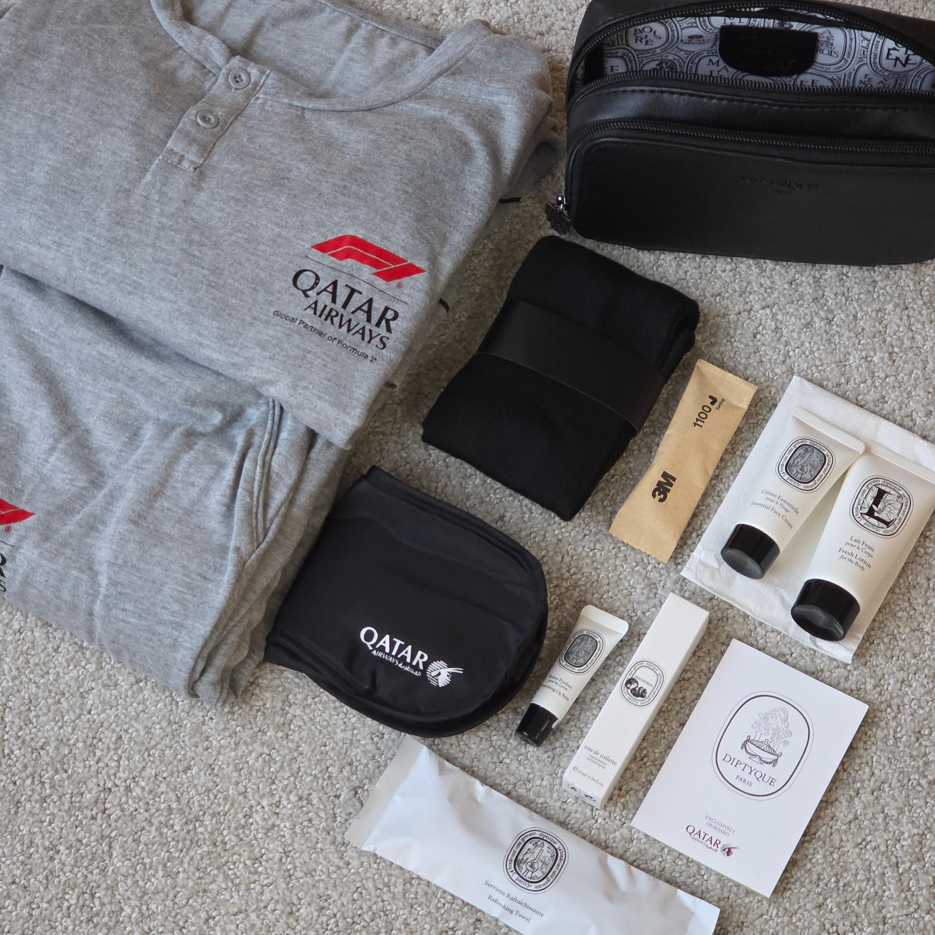 카타르 항공 장거리 비즈니스 클래스 어매니티 도하에서 댈러스 포트워스로 가는 항공편에서도 딥티크 어매니티가 제공되었습니다. 인천 ↔ 도하 항공편과의 차이점으로는 제대로 된 어매니티 백에 담긴 딥티크 어매니티를 받을 수 있다는 점입니다. 그 외의 내용물들은 같습니다. 침구류로는 베개와 쿠션, 이불이 제공되었으며, 시트에 깔 수 있는 매트리스는 좌석에 비치되어 있는 게 아닌, 요청하면 깔아주시는 방식입니다. 라운지 웨어와 슬리퍼 또한 제공되었고, 헤드폰은 PHITEK에서 만든 노이즈 캔슬링 헤드폰으로 대한항공 프레스티지 클래스에서 사용하는 헤드폰과 같습니다. 또한 비즈니스 클래스이지만 라운지 웨어도 제공됩니다. 이번 비행에서는 카타르 항공에서 후원하는 F1로고가 들어간 라운지웨어를 받았습니다.