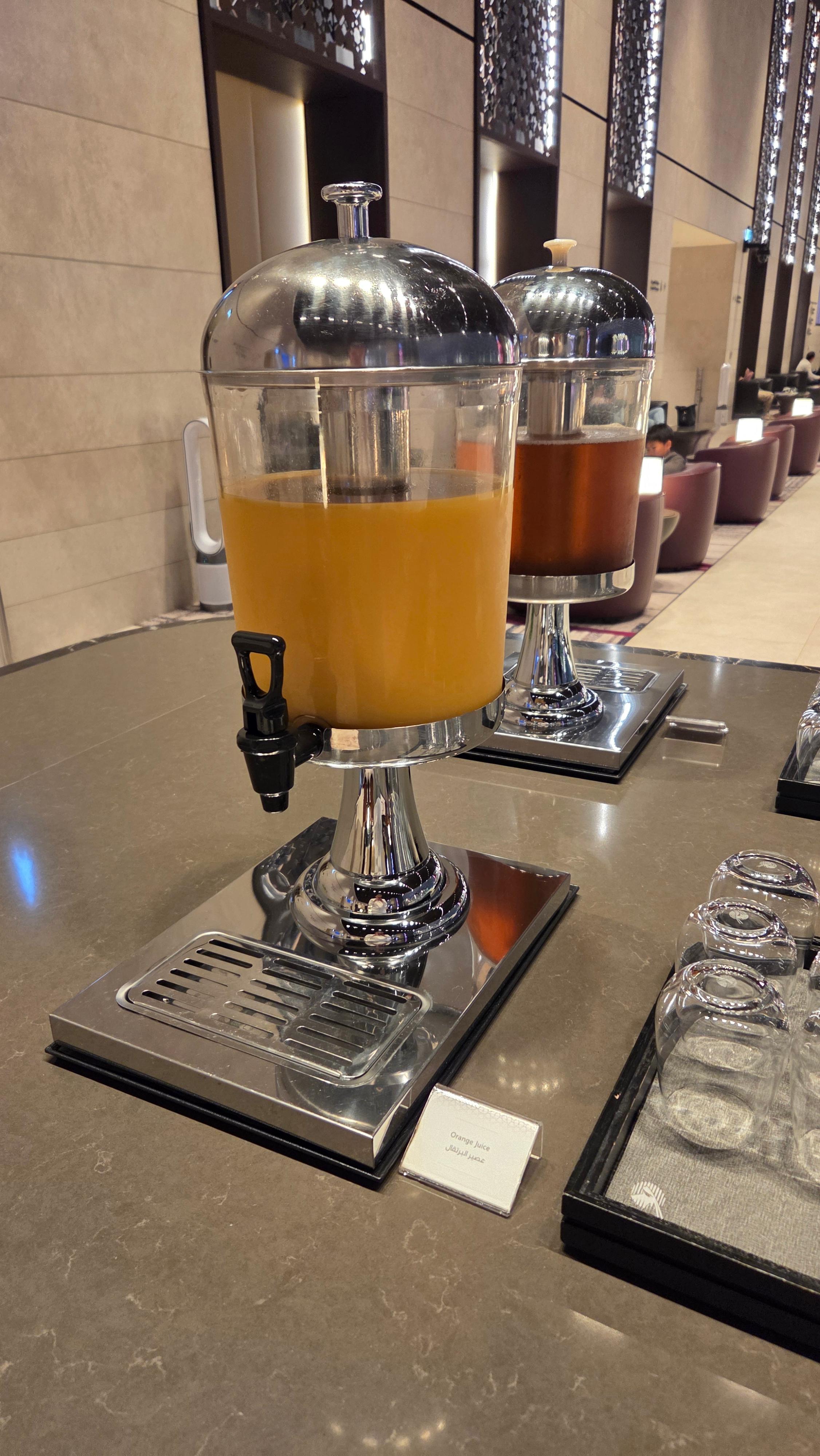 알 무르잔 비즈니스 라운지 더 가든에 입장하면 더 가든을 바라보는 방향을 좌측에는 휴식이 메인인 공간입니다. 이 좌측에는 샤워실, 기도실, 수면실, 회의실을 비롯해 간단한 빵과 음료, 주류를 즐길 수 있고 상대적으로 덜 붐비는 편입니다. 우측은 다이닝을 할 수 있는 공간입니다. 기본적으로 뷔페 메뉴도 있지만 알라카르테 메뉴를 주문할 수도 있습니다. 주문은 지나가는 직원들에게 요청하면 되고, 좌측 휴식공간에 비해 상대적으로 더 붐비는 편입니다. 다이닝 서비스 시작은 오전 5시부터이며 오전 시간에는 제한된 아침메뉴만 주문할 수 있습니다.