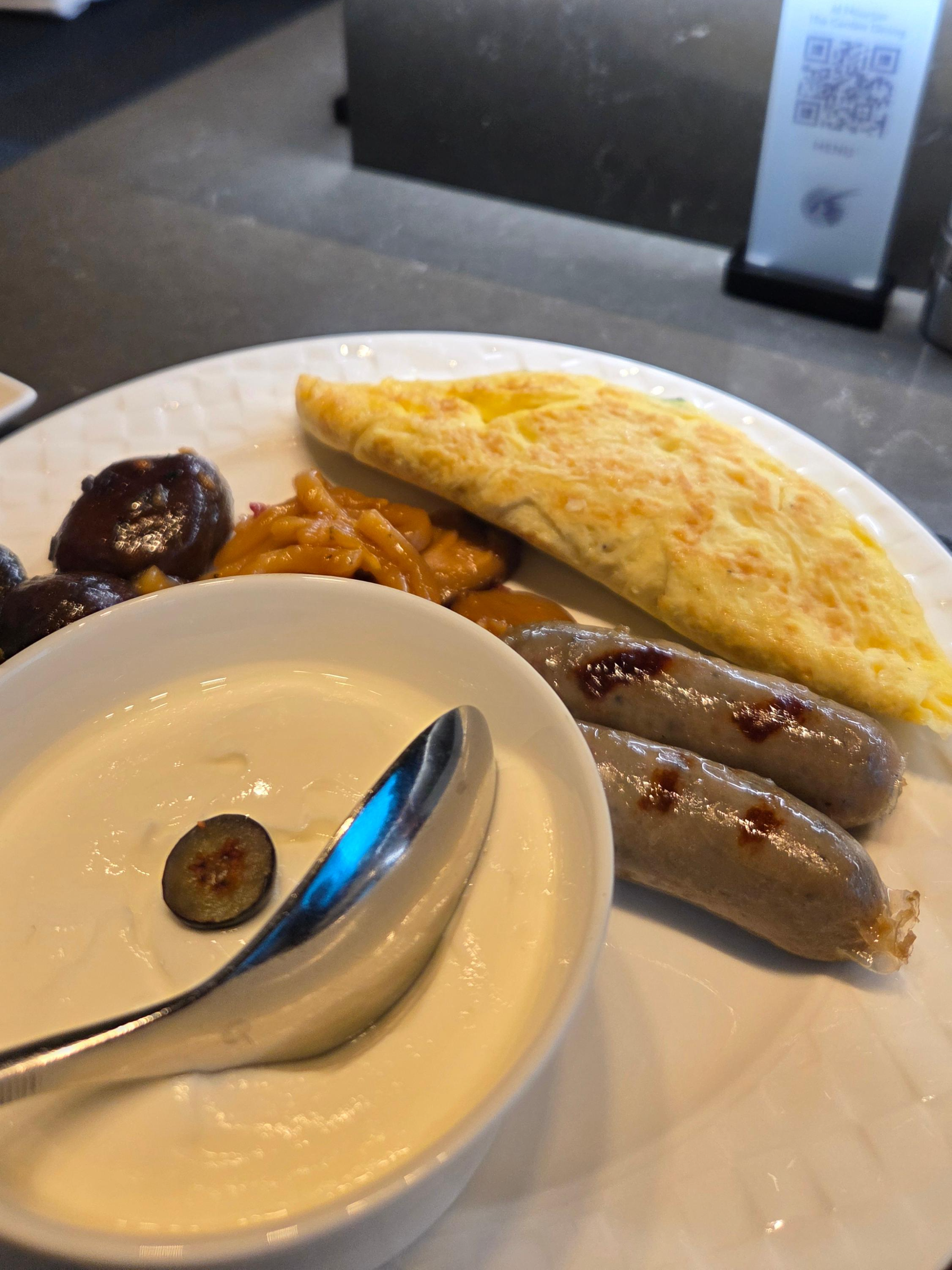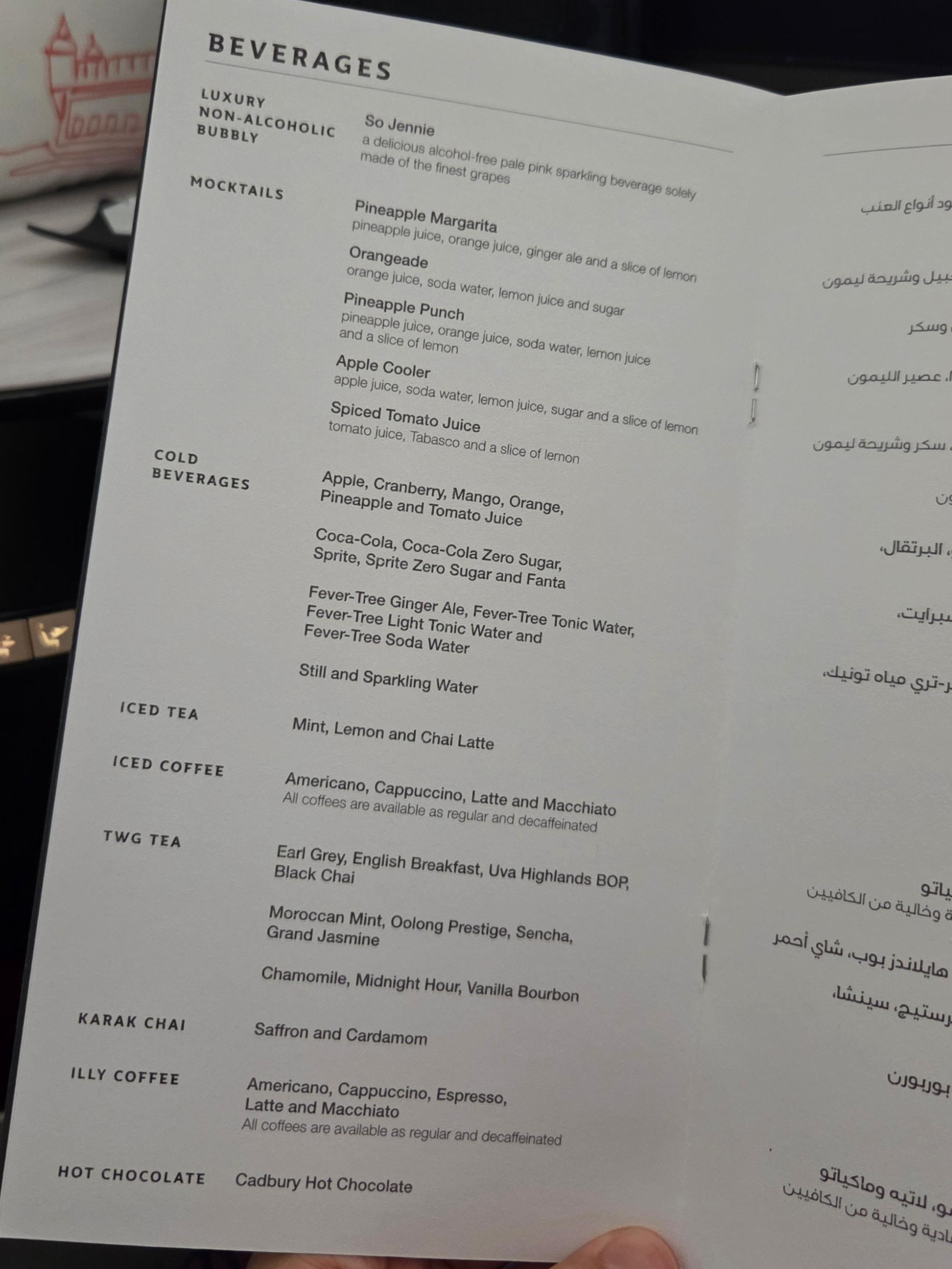 음료로는 So Jennie라는 논알코올 스파클링 음료를 비롯해 파인애플 마가리타, 오렌지네이드, 파인애플 펀치 등의 목테일, 다양한 주스와 소프트드링크가 있었고 민트/레몬 아이스 티, 차이 라테를 비롯해 아메리카노, 카푸치노, 라테와 마키야토 등 에스프레소 베이스 음료가 아이스와 핫으로 제공됩니다. 차는 TWG의 차가 서빙됩니다. 기본적인 얼그레이, 잉글리시 브렉퍼스트 등을 비롯해 민트와 우롱, 재스민, 센차 등 녹차/홍차 베이스의 티와 캐모마일, 미드나잇 아워 등의 논 카페인 티도 준비되어 있습니다. 개인적인 추천은 에스프레소 베이스 아이스커피와 TWG의 미드나잇 아워를 추천드립니다. 미드나잇 아워의 경우 디카페인 홍차로 파인애플, 파파야, 레몬그라스, 마리골드가 블랜딩 된 티로 향긋하면서도 과하지 않아서 3잔은 마신 것 같습니다.