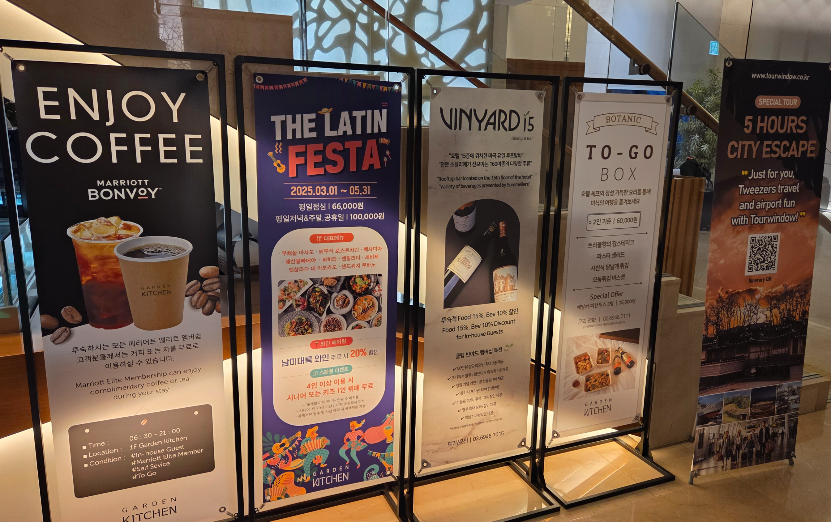 메리어트 본보이 실버 등급 이상의 엘리트 회원은 가든 키친에 있는 커피 머신과 티를 오전 6시 30분 부터 오후 9시까지 무제한 테이크 아웃이 가능한 커피패스를 제공받습니다. 다만, 가든 키친에 앉아서 커피를 마시는 건 불가능합니다.