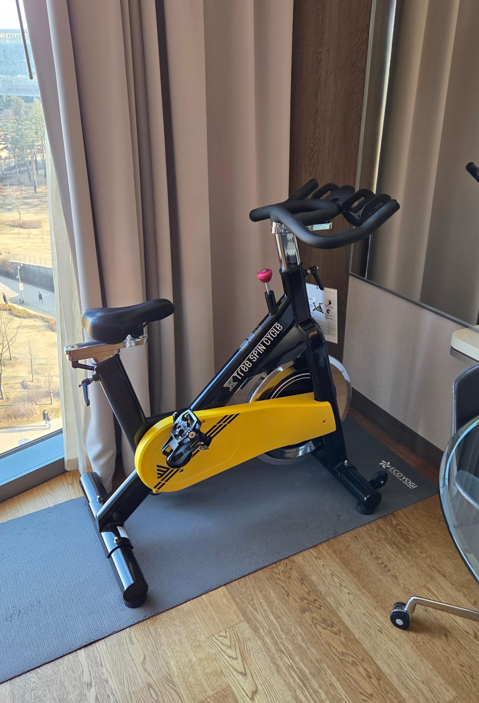 코트야드 서울 보타닉 파크는 코트야드 브랜드이기 때문에 호텔 내에는 기본적인 시설이 있습니다. 피트니스 센터의 경우 지하 1층에 위치해 있고 24시간 운영합니다. 주로 유산소 운동을 할 수 있는 러닝머신, 스피닝 머신, 일립티컬 머신 위주로 설치가 되어 있었고 기본적인 중량운동 기구와 프리 웨이트 도구가 있었습니다. 엄청 좋은 피트니스는 아니었지만, 있을 건 다 있는 피트니스였습니다.