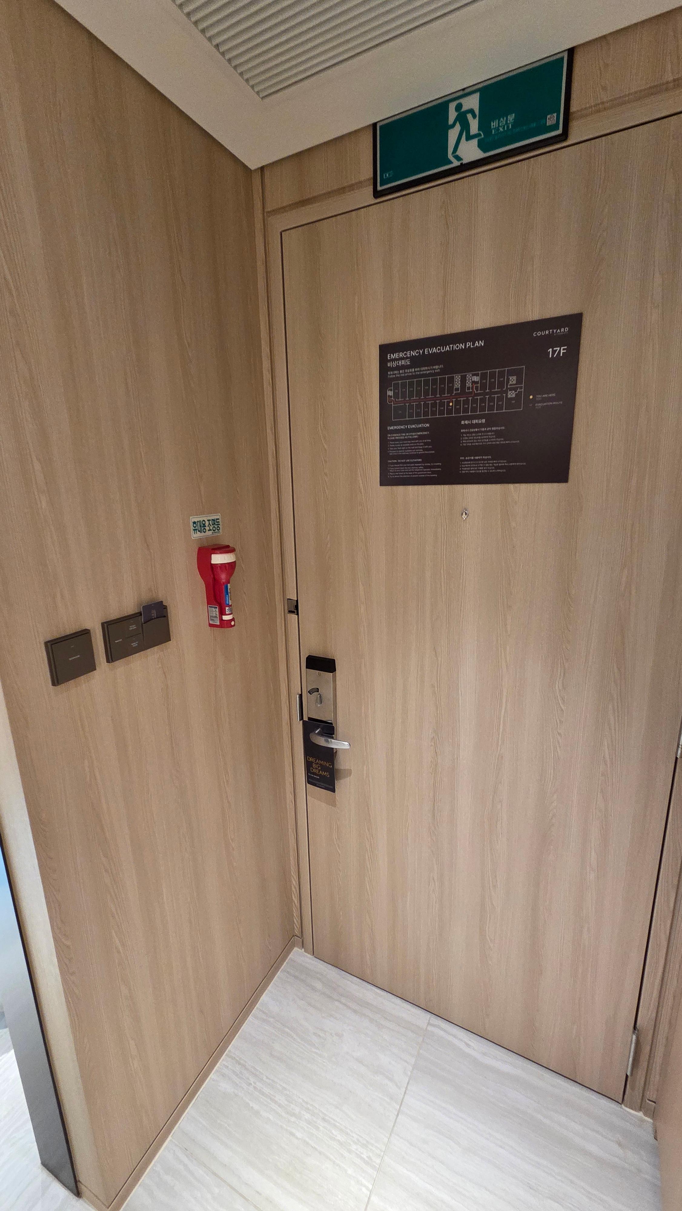 체크인은 로비층(1층)에 있는 체크인 카운터에서 진행되었습니다. 거의 오후 9시가 다 되어 체크인을 했기에 따로 체크인 줄은 없어 따로 기다릴 필요는 없이 바로 체크인을 할 수 있었습니다. 체크인 중에 엘리트 회원에 대한 감사 인사도 빠지지 않았고요, 웰컴 어매니티로는 포인트 외에 선택지는 없었고 무료 조식에 대한 안내와 함께 코트야드 세종에 대한 안내장도 함께 받았습니다. 체크인을 해주시는 직원분이 친절하시고 프로페셔널하셔서 호텔에 대한 안내를 빠짐없이 빨리 받을 수 있었습니다. 코트야드 세종의 객실은 엘리베이터를 통해 이동할 수 있고 편리하게도 키 카드를 엘리베이터에 터치하면 자동으로 객실이 있는 층의 버튼이 눌렸습니다.
