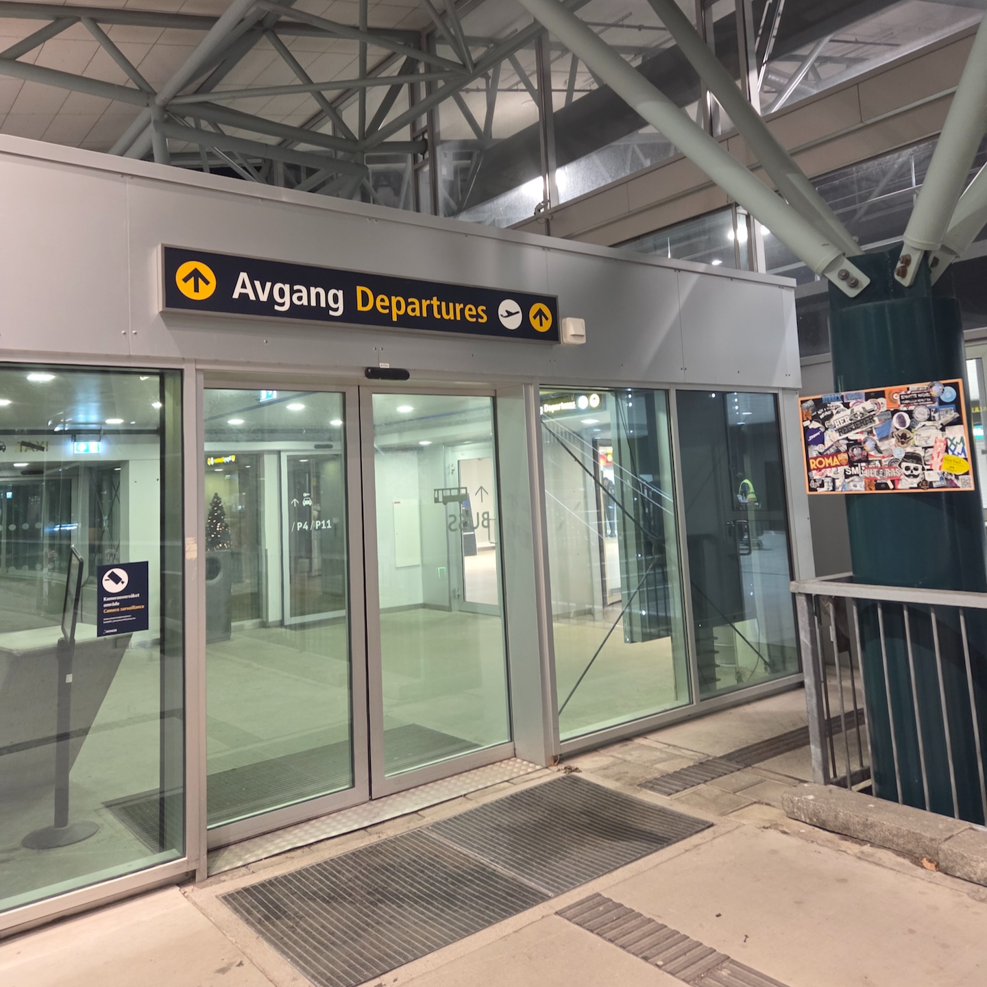 게이트가 나와있지 않는 AY542편과 트롬쇠 공항 에어사이드 분리된 공간으로 가는 길