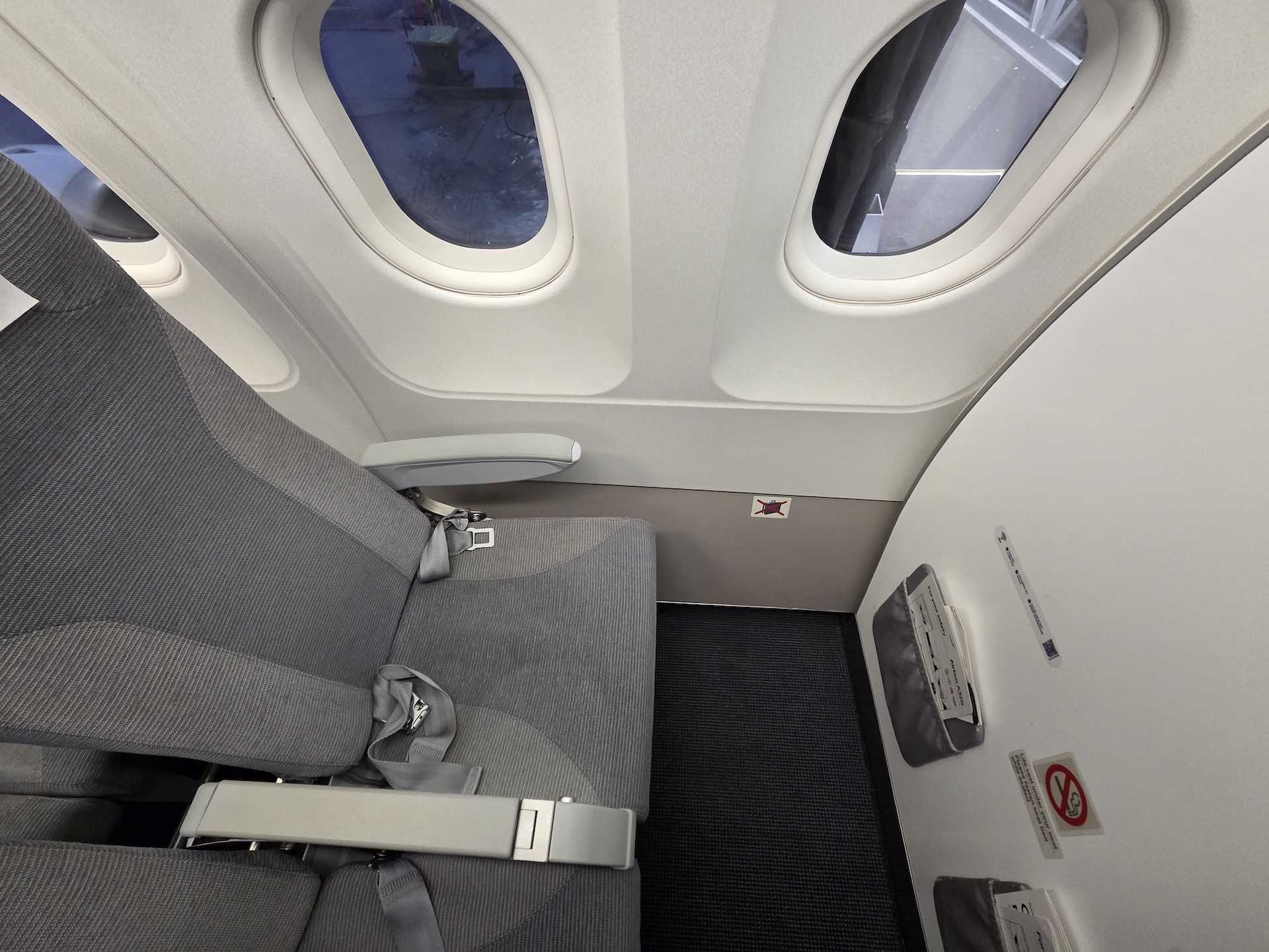 소소한 아쉬운 점을 찾아보자면, 1열 벌크헤드 좌석의 불편함이 있습니다. 1열 벌크헤드 좌석을 선택할 때는 다리를 펼 수 있는 C나 D열의 좌석을 선택할게 아니라면 차라리 2열을 선택하는 게 낫다는 점을 다시 깨달았습니다. 단거리 비행이면 화장실 참는 건 쉽지만, 다리를 펴지 못한 채로 1시간 동안 있는 건 생각보다 힘들더라고요. 다른 부분으로는 트롬쇠 공항에서 시스템의 문제로 게이트 안내가 되지 않았다는 점이 있습니다. 제가 탑승한 이후부터 탑승이 완료되기까지 25분여의 시간이 있었기에 그 사이에 이 부분이 고쳐져서 안내 디스플레이에 게이트가 표시되었는지는 모르겠지만, 그래도 모든 승객이 제 시간 내에 탑승해서 지연 없이 이륙했다는 걸 생각해 보면 아주 작은 아쉬움 정도였습니다.