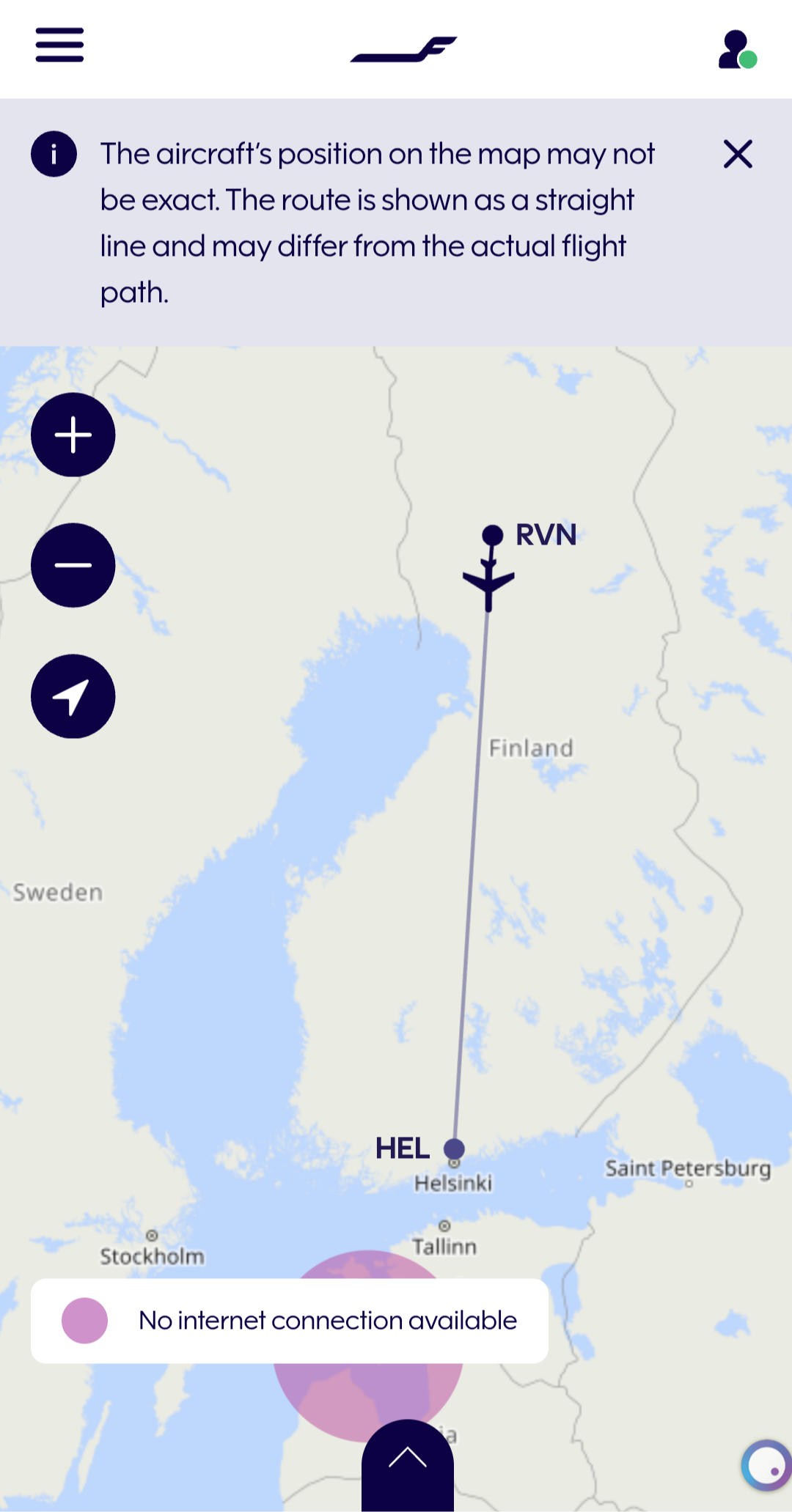 • AY542, 노르웨이 트롬쇠 공항 (TOS) → 핀란드 로바니에미 공항 (RVN) → 핀란드 헬싱키 반타공항(HEL)