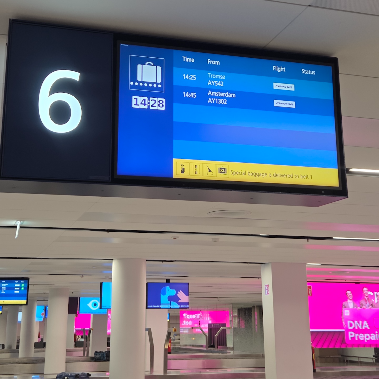 헬싱키 반타 공항에 착륙한 핀에어 A320-200과 헬싱키 반타 공항 수하물 수취대