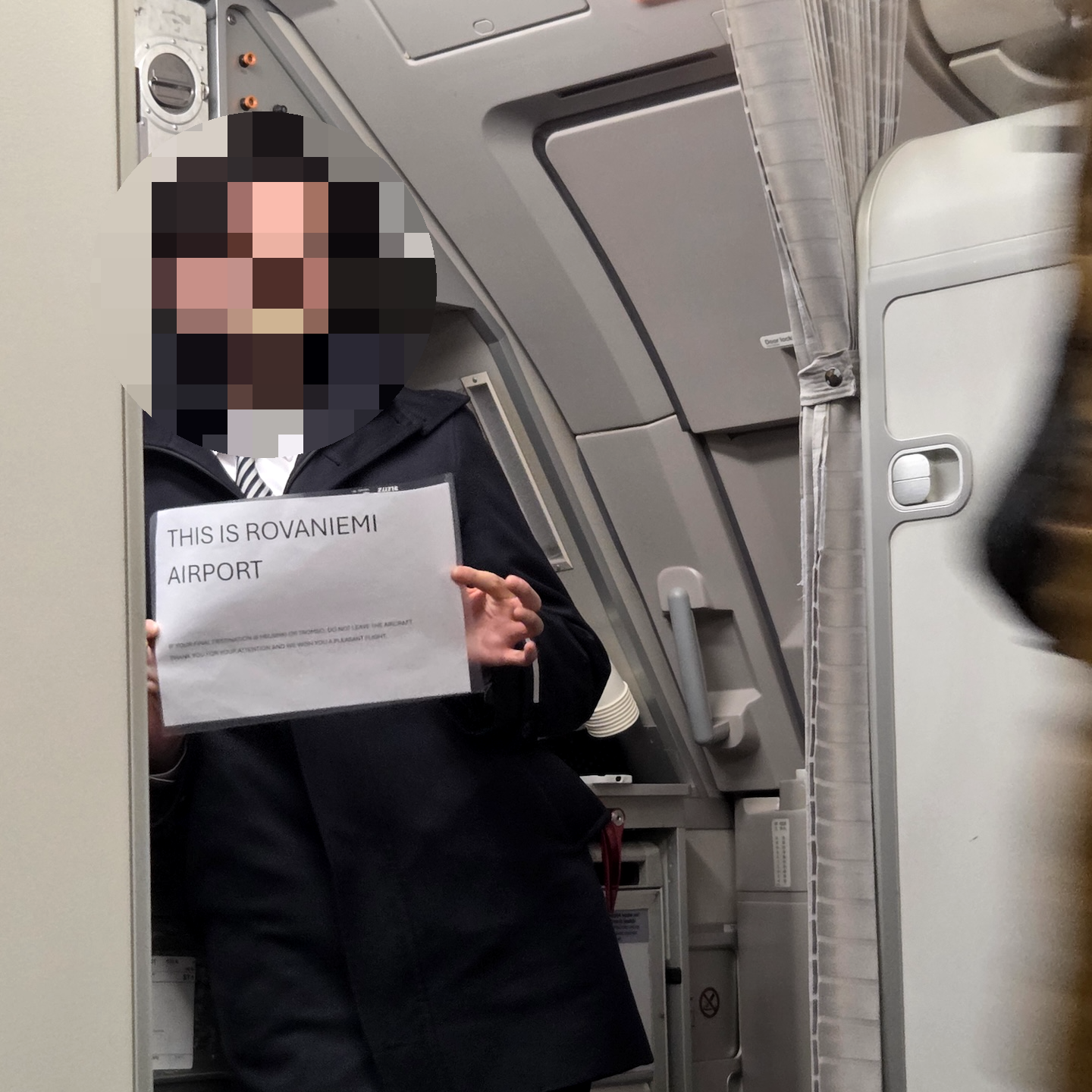 지난번에 탔던 AY541편과 마찬가지로 AY542편은 트롬쇠에서 이륙해 바로 헬싱키로 가는 대신 로바니에미 공항에 중간 기착을 했습니다. 이번에도 로바니에미 공항에서 승객들이 내리기 전에 몇 번이나 내리는 공항을 잘 확인하라는 안내방송이 나왔고요, 이번에는 다행히 헬싱키에서 내려야 할 손님이 로바니에미에서 잘못 내리는 일은 없었습니다. 같은 AY542편을 이용해 헬싱키까지 향하는 승객들은 로바니에미 공항에서 내리지 않고 기내에서 대기를 했습니다. 기내 대기 과정에서 승객 수와, 탑승 좌석, 그리고 오버헤드 빈에 올라가 있는 수하물을 일일이 대조하고 확인하는 보안점검 과정이 있었고요, 중간 급유 때는 반드시 안전벨트를 풀라는 안내방송도 나왔습니다. 중간 기착한 로바니에미 공항에서 큰일이 발생하지 않아서인지 예정된 시간에 이륙해서 헬싱키 공항으로 향할 수 있었습니다.