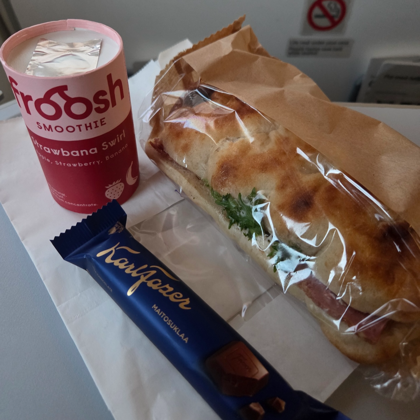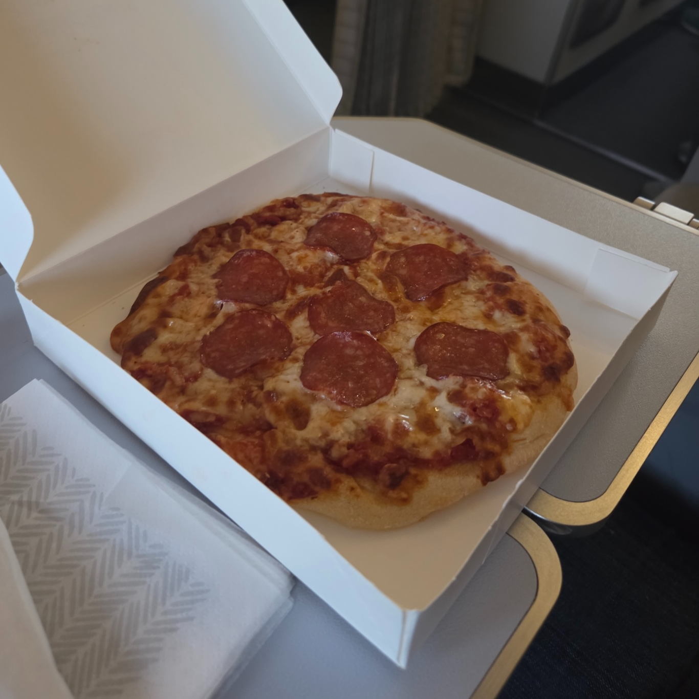 제가 탑승했던 항공편은 두 구간으로 나뉘어 있기에 과연 언제 음식이 나올지 궁금했었는데요, 트롬쇠에서 로바니에미로 이동하는 첫 구간 이륙 직후에 음료 서비스가 시작되기 전에 가장 먼저 나왔습니다. 프리미엄 콤보의 경우 한 패키지에 스무디와 샌드위치, 초콜릿이 담겨있고 커피나 티는 음료 서비스 때 요청하면 받을 수 있습니다. 샌드위치의 경우 엄청 맛있는 샌드위치는 아니었지만 충분히 괜찮은 샌드위치였고 스무디도 맛있었습니다. 비행기 내에서 먹는 음식임을 감안할 때 12.6 미국달러라는 금액으로 먹을 수 있는 괜찮은 한 끼였습니다. 피자의 경우 도우에 토마토, 모차렐라 치즈, 페퍼로니만 올라갔지만 오븐에 데워 따뜻하면서도 눅눅하지 않아서 충분히 괜찮은 피자였습니다. 어쨌든 데워주는 핫푸드였고, 작았지만 피자 한 조각이 아닌 작은 피자 한판이었다는 걸 생각해 보면 11.4 미국달러라는 금액으로 충분히 괜찮았고요.