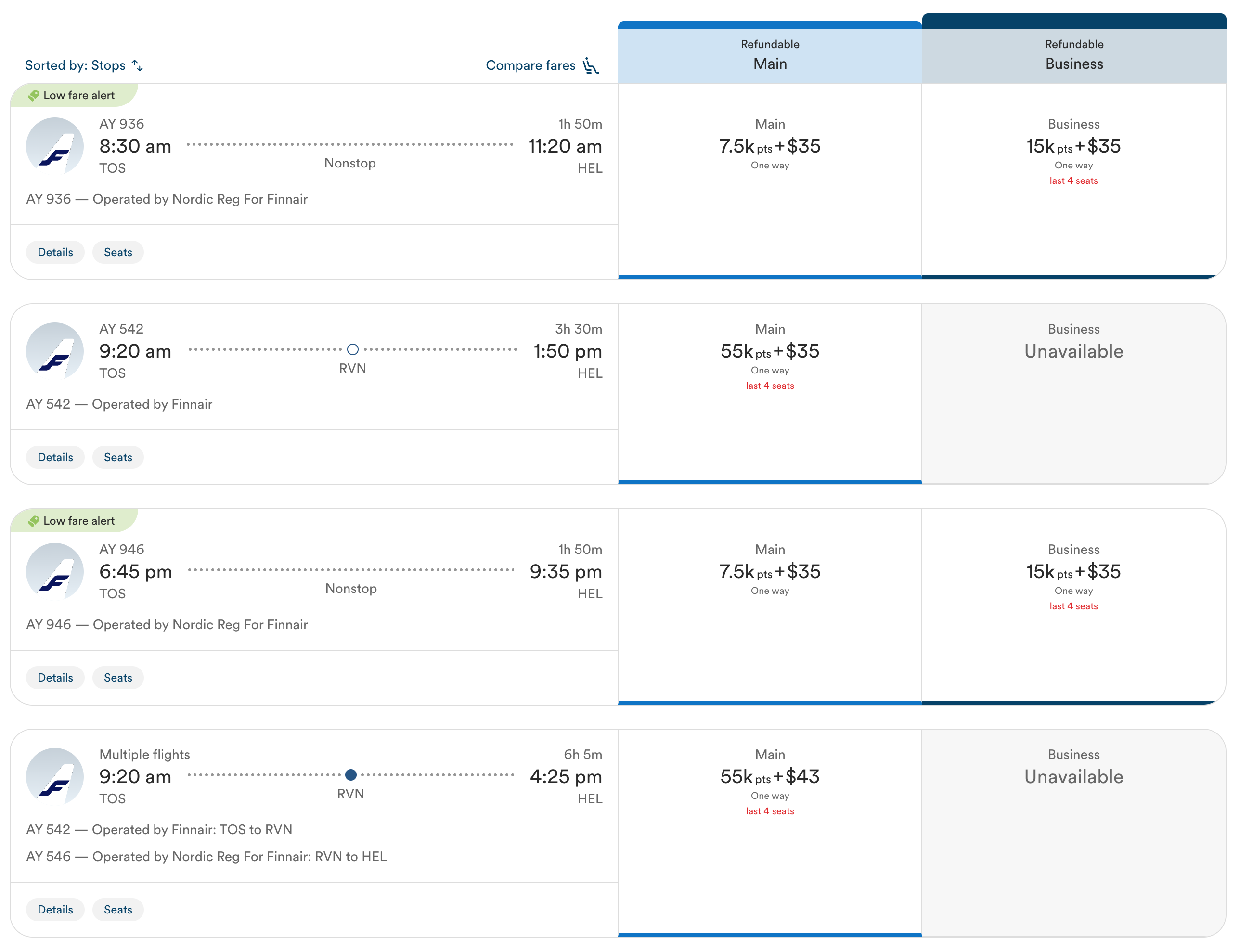 트롬쇠에서 헬싱키로 가는 어워드 항공권, 알래스카 항공 (c) alaska.com