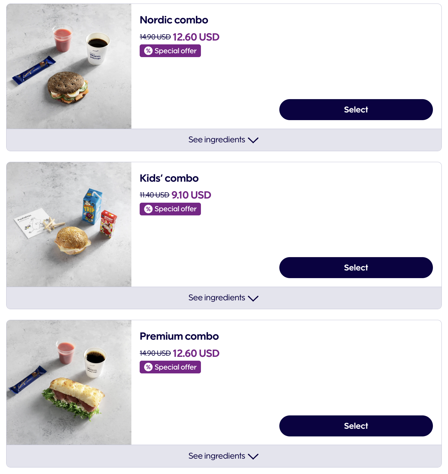 핀에어 단거리 사전 기내식 메뉴 3 (c) finnair.com