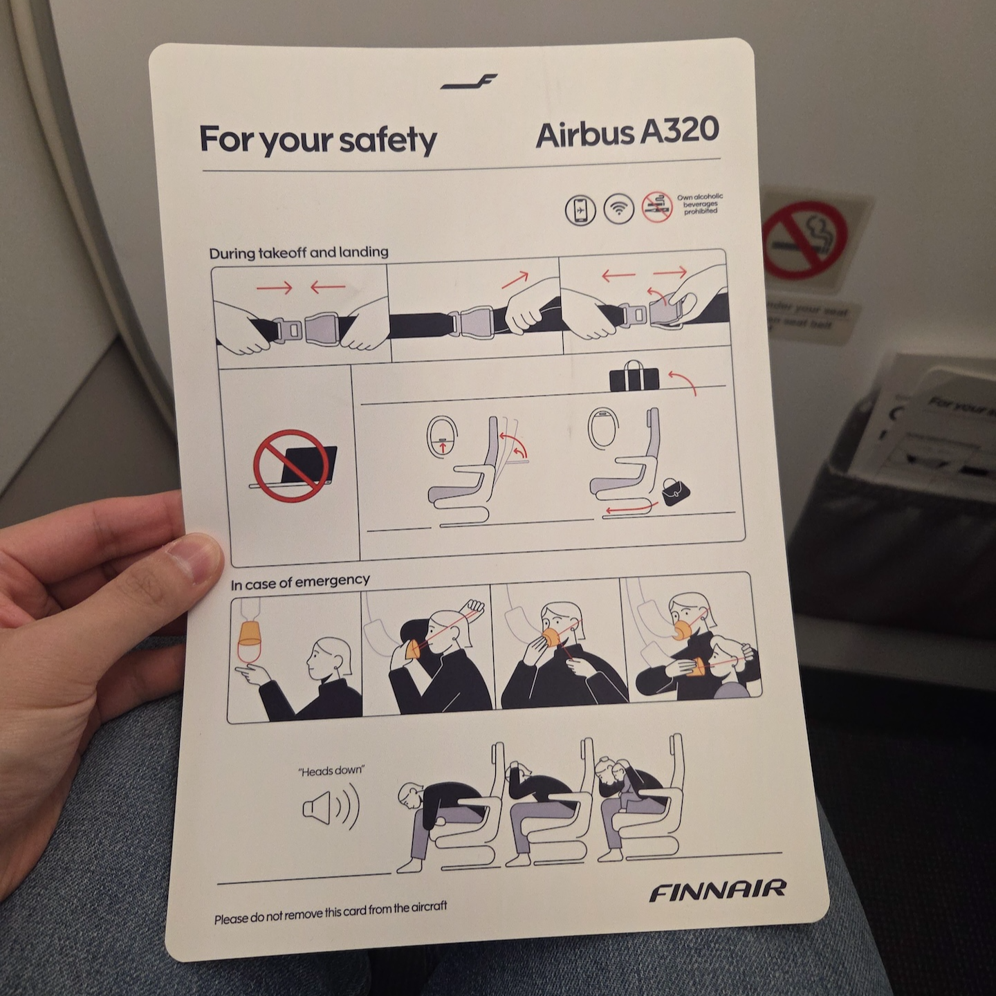 핀에어 A320-200 항공기 사전좌석지정 가격 (회원 등급이 없을 때) 이번에 AY542편에서 탑승한 항공기는 약 25년 된 핀에어의 에어버스 320 항공기였습니다. 핀에어는 에어버스 320 항공기를 10대 보유하고 있고, 헬싱키를 베이스로 국내선과 중단거리 유럽 내 국제선에 주로 투입하고 있습니다. 제가 탑승했던 때가 마침 에어버스에서 A320항공기에 대한 리콜 결정을 내린 직후였었는데, 핀에어에서는 이 업데이트를 다 해결했는지 따로 지연 없이 예정되었던 A320항공기로 AY542편을 운항했습니다.