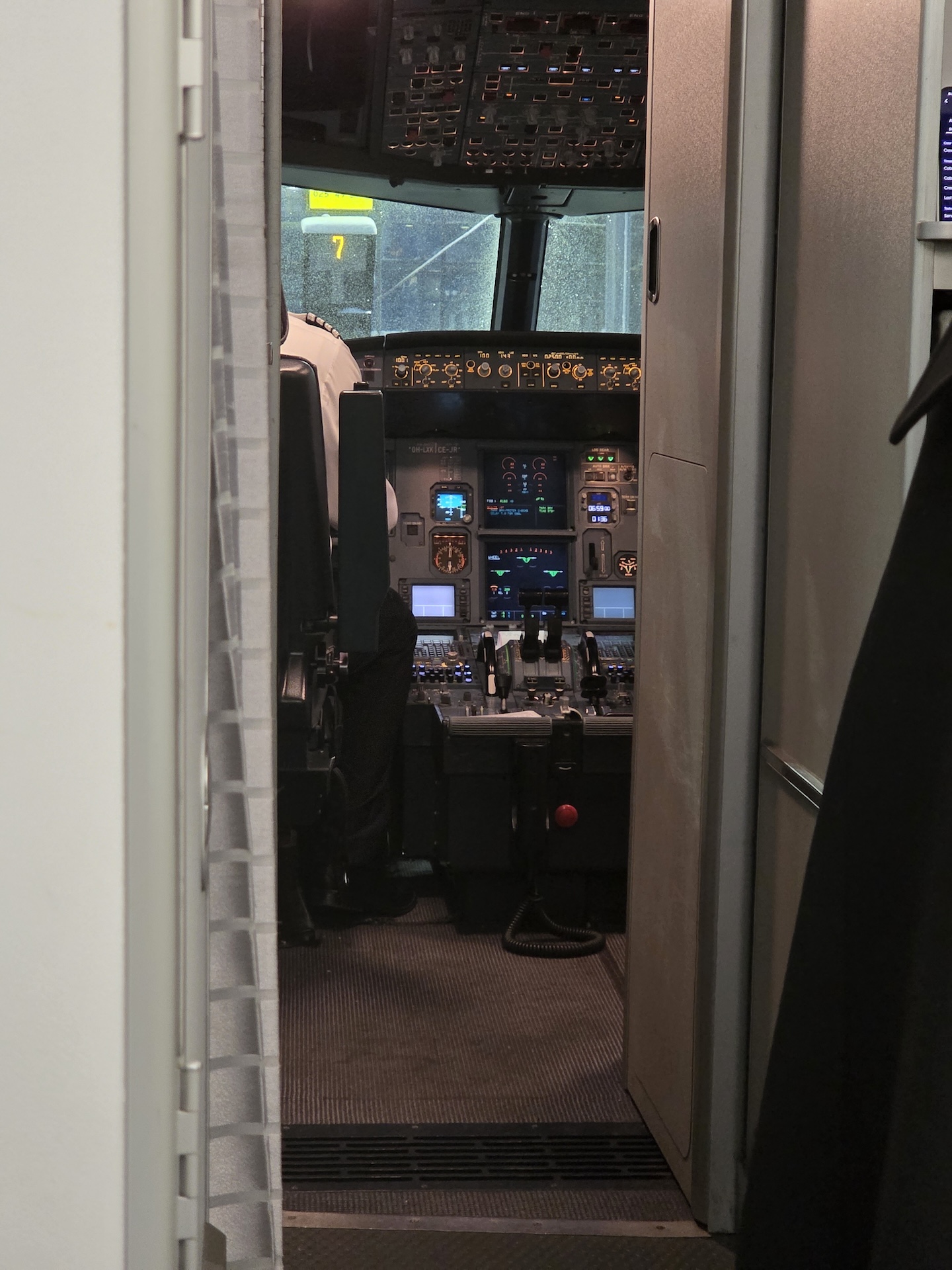 핀에어의 A320-200 칵핏과 전방 갤리