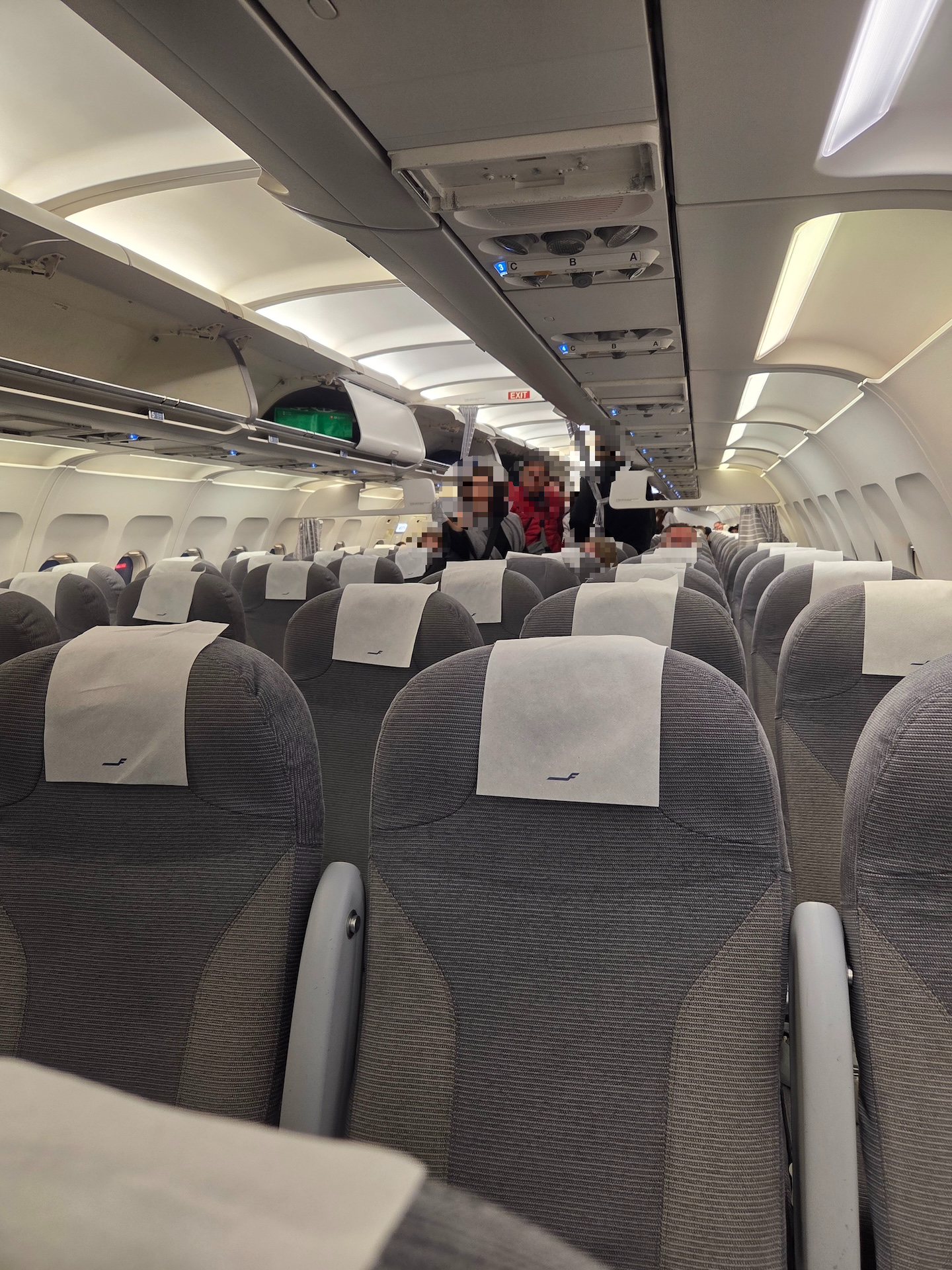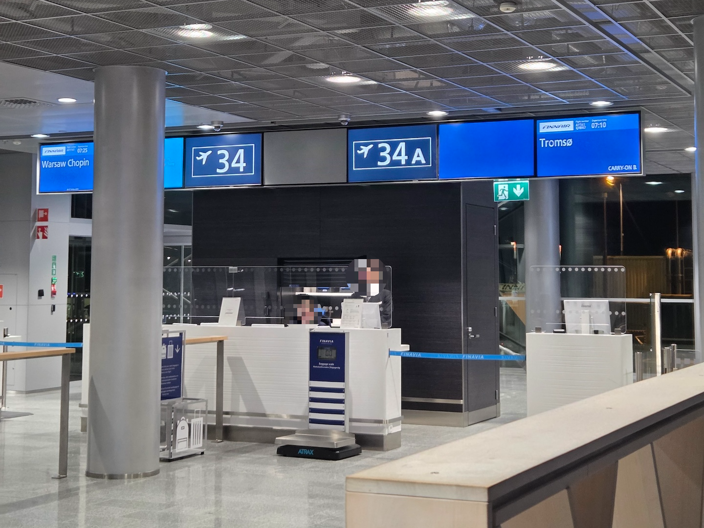 헬싱키 반타 공항에서 출발해 로바니에미 공항을 거쳐 트롬쇠 공항으로 향하는 핀에어 AY541편은 출발 15분 전인 오전 6시 40분에 보딩이 시작될 예정이었는데요, 실제로는 예정 시간보다 10분이 지난 6시 50분에 보딩이 시작되었습니다. 보딩 전에는 비행기가 풀 부킹이라 자발적으로 스케줄 변경을 할 승객을 모집하고 있었고, 풀 부킹이어서인지 게이트 주변은 아주 복잡했습니다. 핀에어는 국내선 구간에는 비즈니스 클래스를 운영하지 않는데, 이 노선 또한 국내선 구간인 로바니에미 공항을 거쳐서 트롬쇠로 향하는 노선이어서 그런지 보딩 그룹 1과 2가 보딩 시작과 동시에 탑승을 시작했습니다.