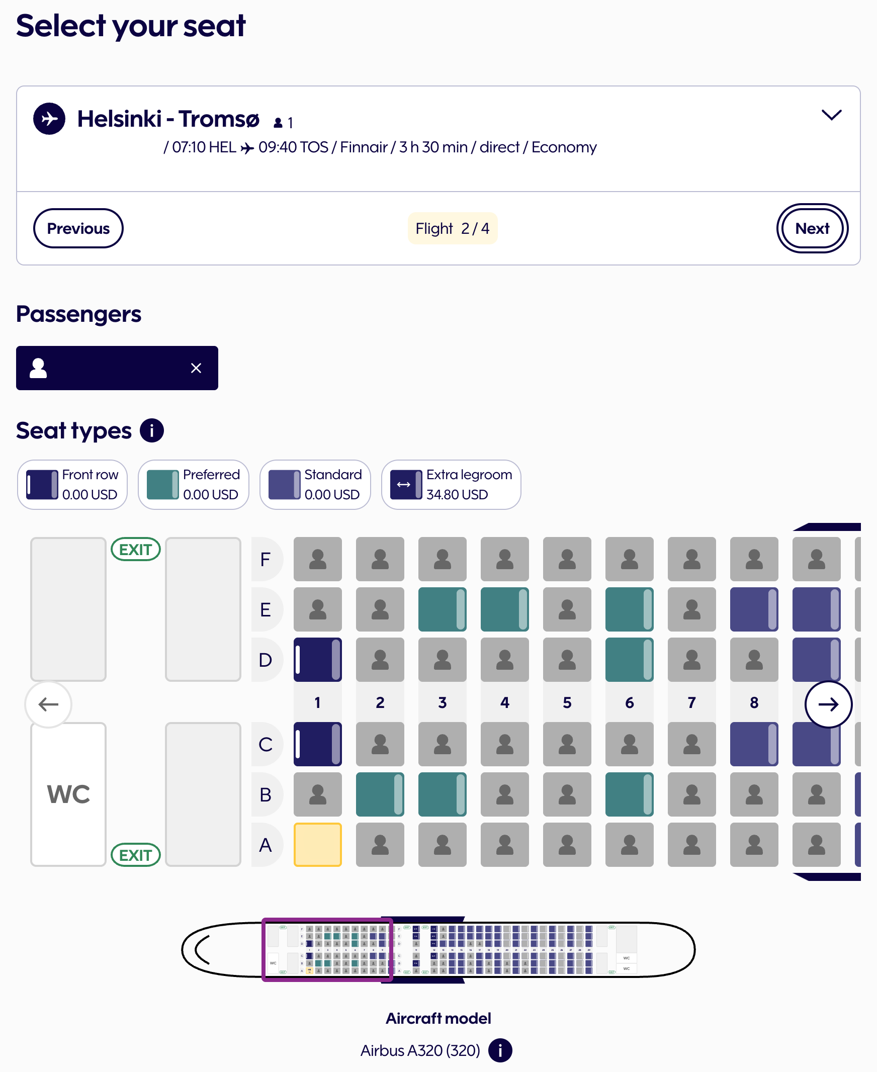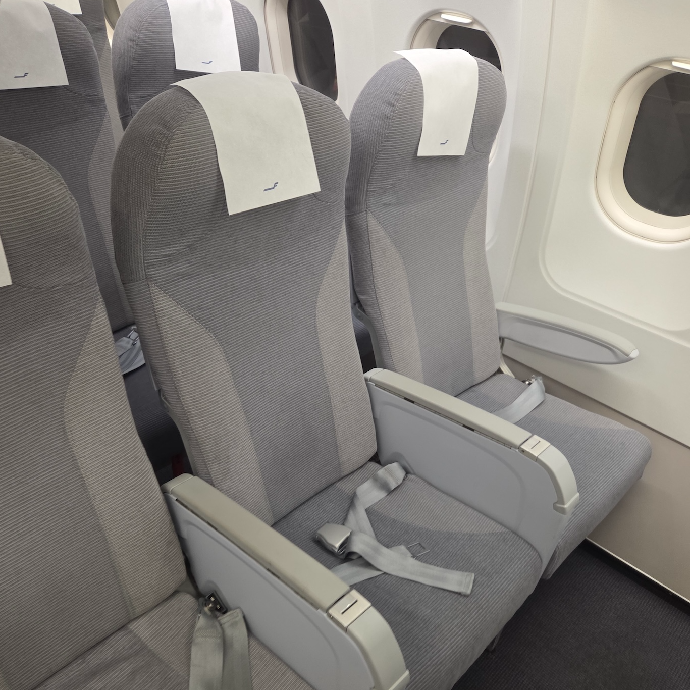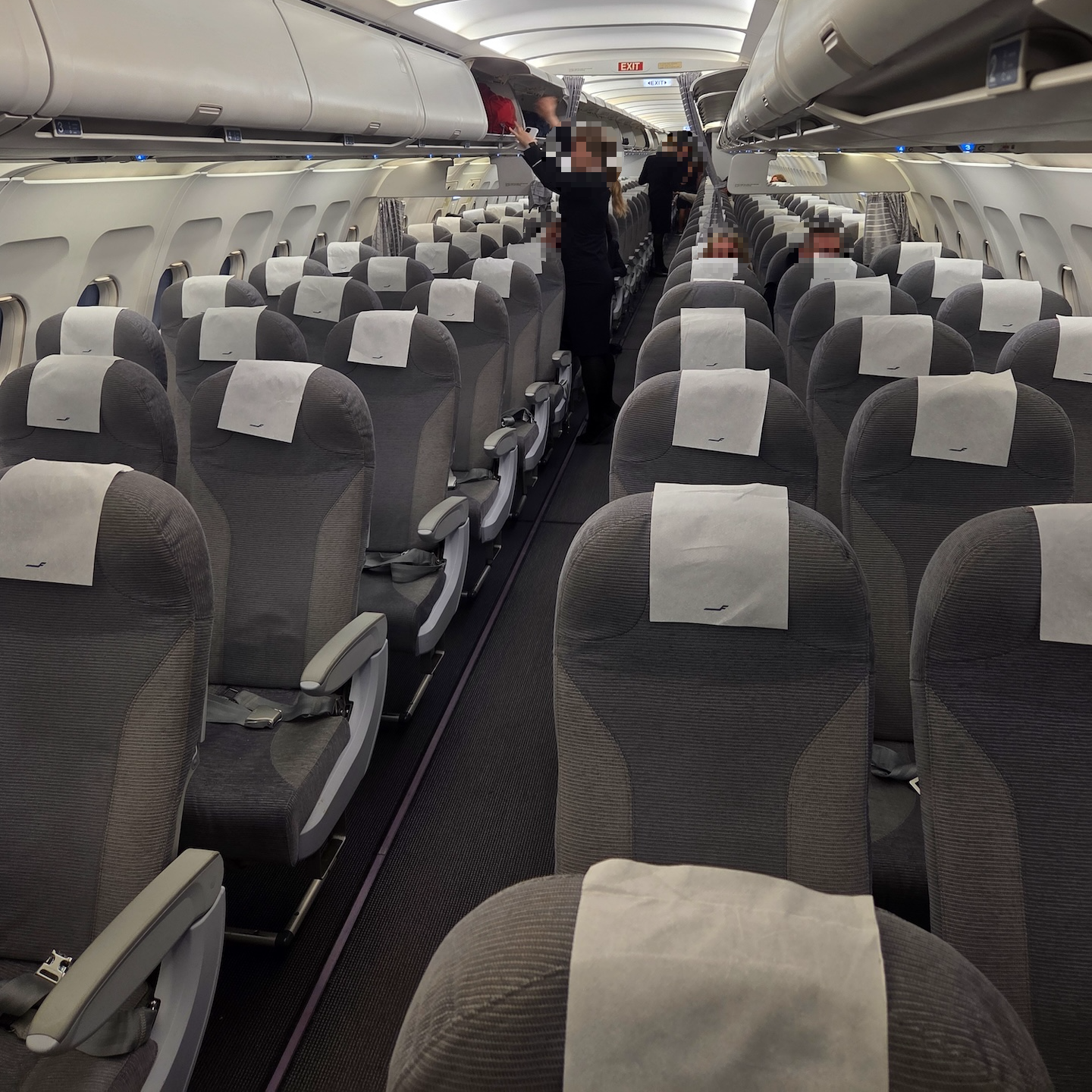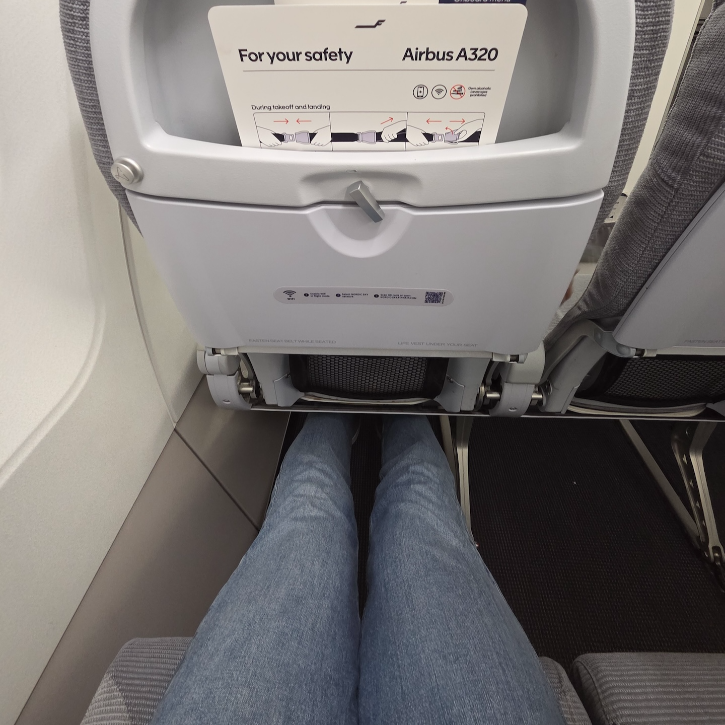 이번에 탑승한 핀에어의 A320-200의 경우 한국의 파라타 항공이나 에어로 케이에서도 운항하고 있는 기종입니다. 핀에어의 A320-200의 좌석 수는 수는 총 174개로 180개인 에어로 케이나 에어 부산보다는 적고, 에어로 케이와는 정확히 동일합니다. 이는 아마도 파라타 항공의 A320-200의 경우 다른 유럽 항공사인 ITA에서 운용하던 항공기이기 떄문에 핀에어와 같은 좌석수를 가지고 있지 않을까 생각합니다. 핀에어의 A320-200은 3-3 배열로 총 29열이 배치되어 있습니다. 그중 1열에서 8열까지는 원래 비즈니스로 운영되는 좌석이지만, 이번 비행에서는 비즈니스 클래스를 운영하고 있지 않기 때문에 모든 좌석이 이코노미 클래스로 운영이 되었습니다. 물론, 핀에어 협동체 비즈니스 클래스는 중앙 좌석만 비우고 같은 좌석으로 운영하는 유럽 특유의 비즈니스 클래스인 유로비즈이기 때문에 이게 가능하지만요.