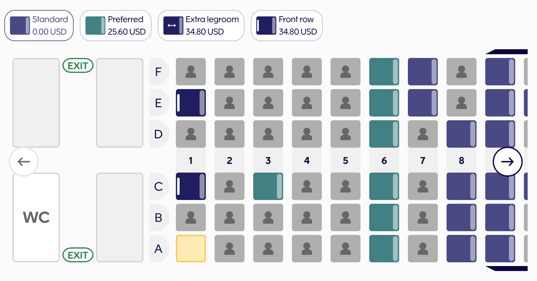 핀에어의 A320-200 좌석배치도, 원월드 등급이 없을 때 이번에 탑승한 핀에어의 A320-200의 경우 한국의 파라타 항공이나 에어로 케이에서도 운항하고 있는 기종입니다. 핀에어의 A320-200의 좌석 수는 수는 총 174개로 180개인 에어로 케이나 에어 부산보다는 적고, 에어로 케이와는 정확히 동일합니다. 이는 아마도 파라타 항공의 A320-200의 경우 다른 유럽 항공사인 ITA에서 운용하던 항공기이기 떄문에 핀에어와 같은 좌석수를 가지고 있지 않을까 생각합니다. 핀에어의 A320-200은 3-3 배열로 총 29열이 배치되어 있습니다. 그중 1열에서 8열까지는 원래 비즈니스로 운영되는 좌석이지만, 이번 비행에서는 비즈니스 클래스를 운영하고 있지 않기 때문에 모든 좌석이 이코노미 클래스로 운영이 되었습니다. 물론, 핀에어 협동체 비즈니스 클래스는 중앙 좌석만 비우고 같은 좌석으로 운영하는 유럽 특유의 비즈니스 클래스인 유로비즈이기 때문에 이게 가능하지만요.