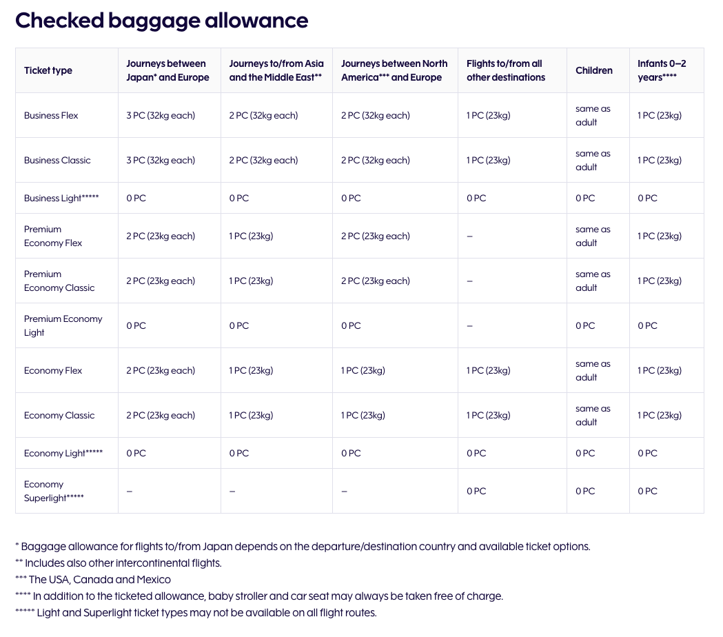 핀에어 위탁 수하물 규정 (c) finnair.com