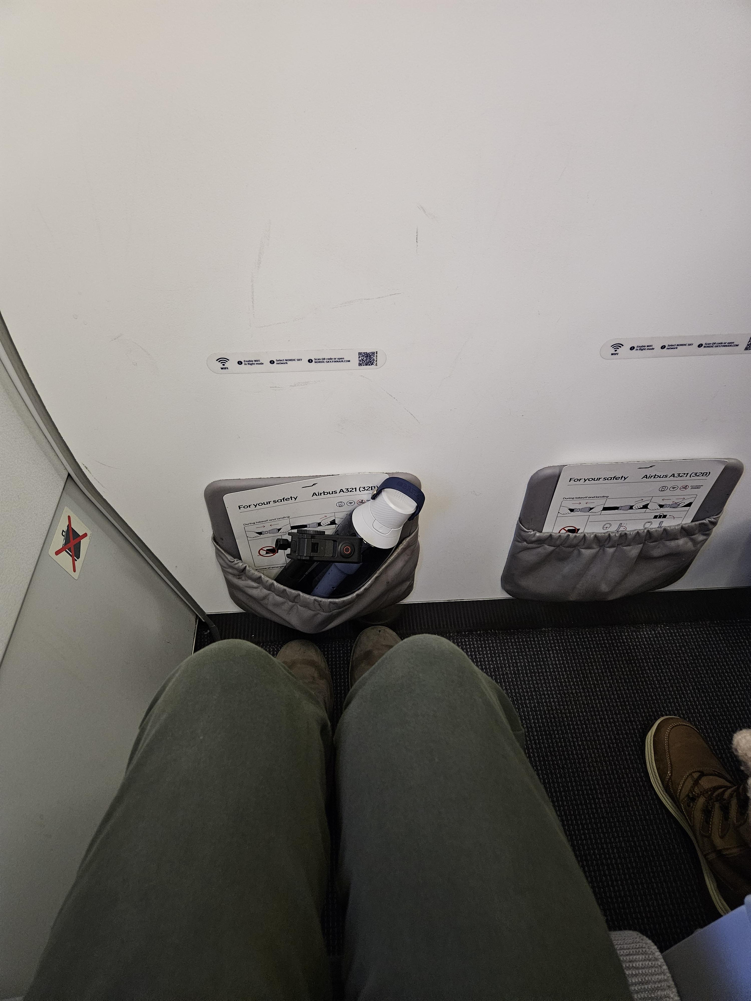 핀에어 A321 이코노미 벌크헤드석 핀에어의 A321-200 항공기는 일반적인 3-3 배열의 협동체 항공기입니다. 좌석 간격은 최대 31.5인치 최소 30인치로 조금 더 넓은 간격을 가진 좌석들은 2~9열에 위치해 있습니다. (이 좌석들은 노선이나 상황에 따라 유로 비즈니스로 운영되는 좌석이기도 합니다) 저는 가장 앞 열인 1A열에 탑승했습니다. 1A열의 레그룸은 지난번에 탑승한 핀에어의 A350항공기나 E190항공기의 벌크헤드석과 비교해 조금 좁았지만 엄청 불편한 수준은 아니었습니다. 좌석 또한 평범한 유럽 항공사들의 이코노미 좌석(Recaro 3530)으로 천으로 마감된 일체형 헤드레스트를 가지고 있는 좌석이었습니다. 전반적으로 한국의 저비용 항공사들보다 조금은 낫고, 대한항공보다는 떨어지는 정도의 좌석이라고 생각됩니다.