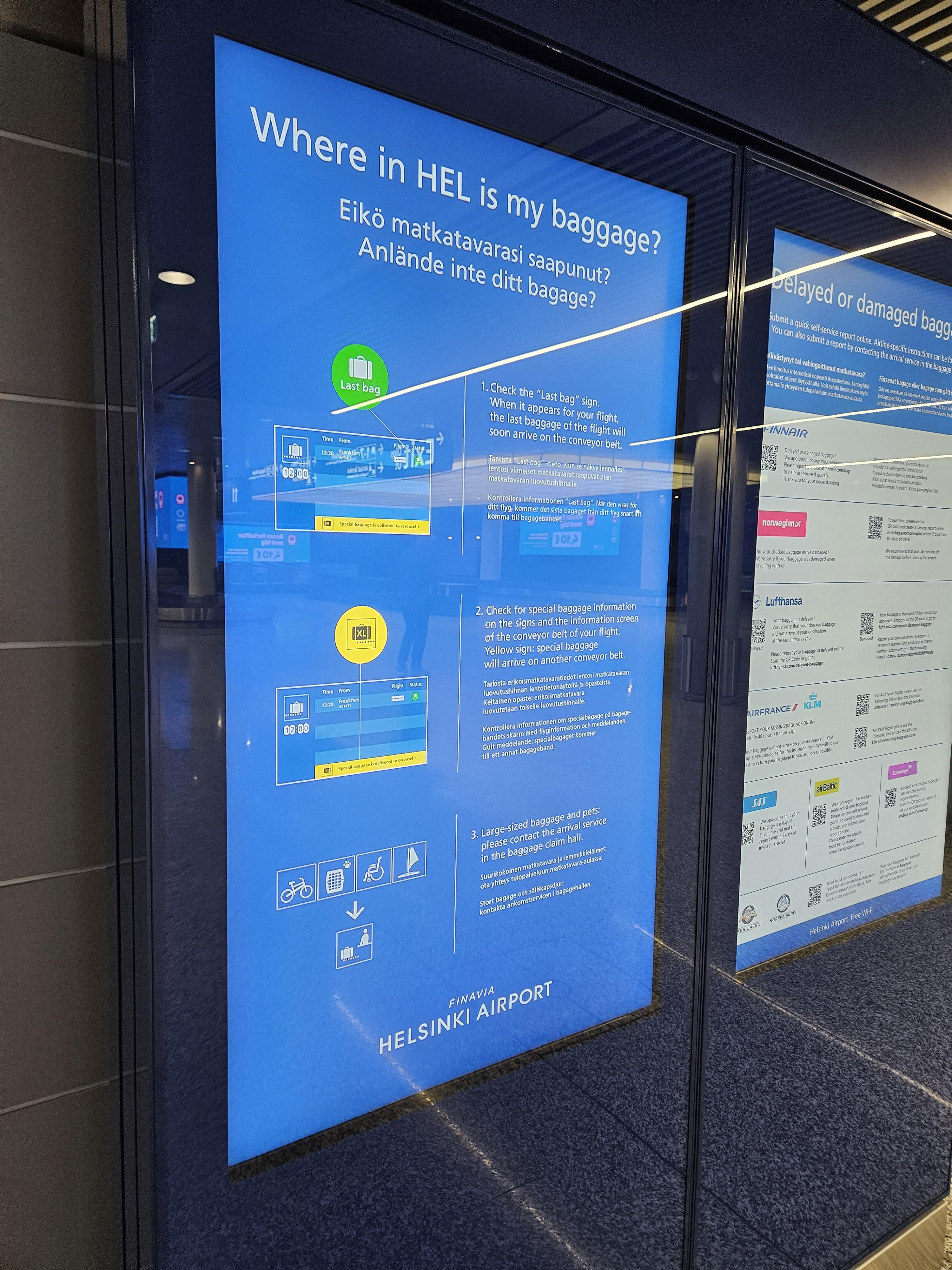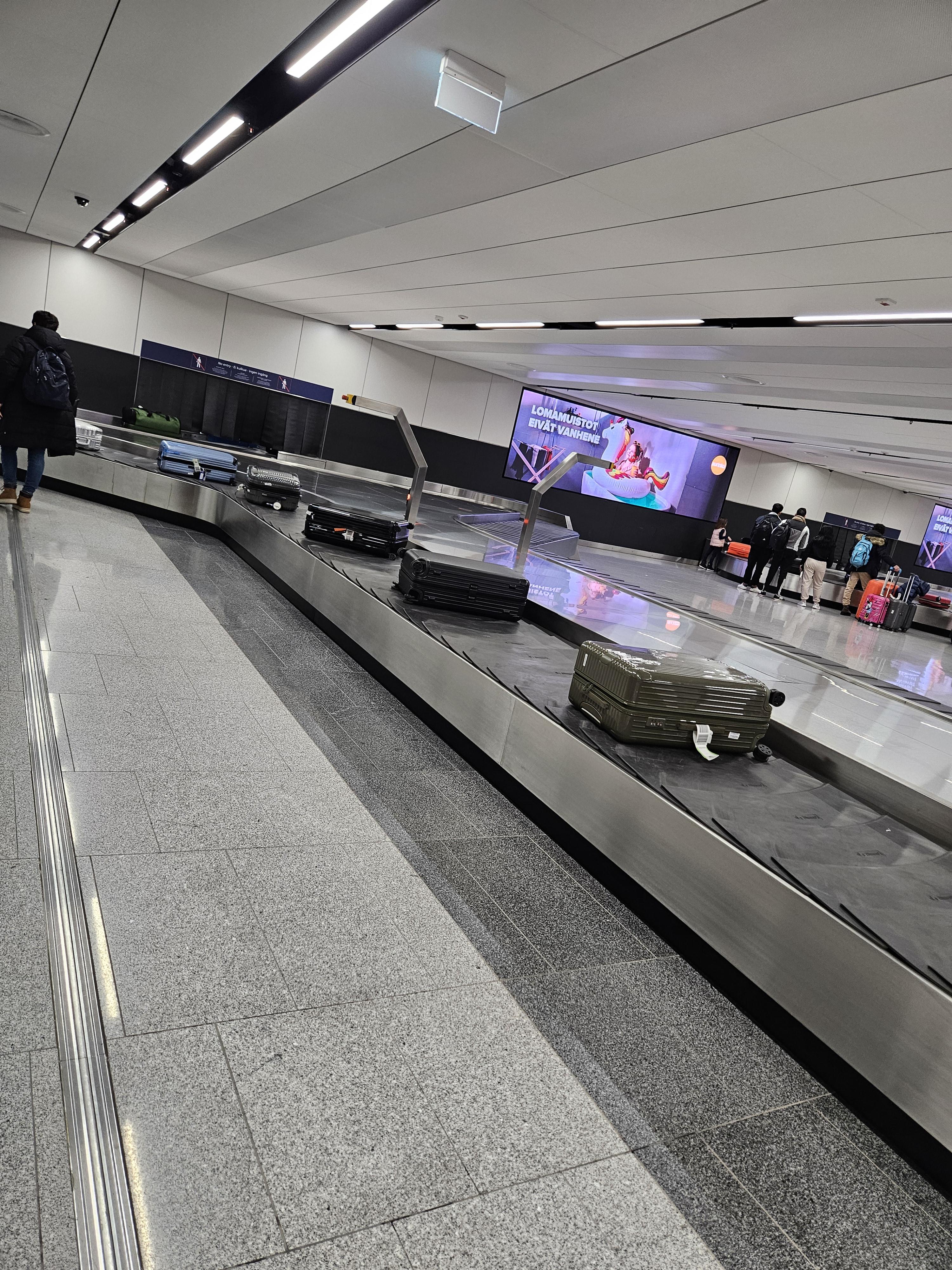 헬싱키 공항 수하물 수취대 이번 여행의 한 가지 큰 아쉬움은, 수하물에 우선 처리 표시가 붙어있었음에도 수하물이 다른 수하물들이 거의 다 나온 후에야 나왔다는 점입니다. 한두 번이야 그럴 수 있다고 생각했는데, 지난번에 로바니에미 공항에서도 같은 경험이 있었기에, 핀에어의 우선 수하물 처리 시스템에 문제가 있지 않나 생각됩니다.