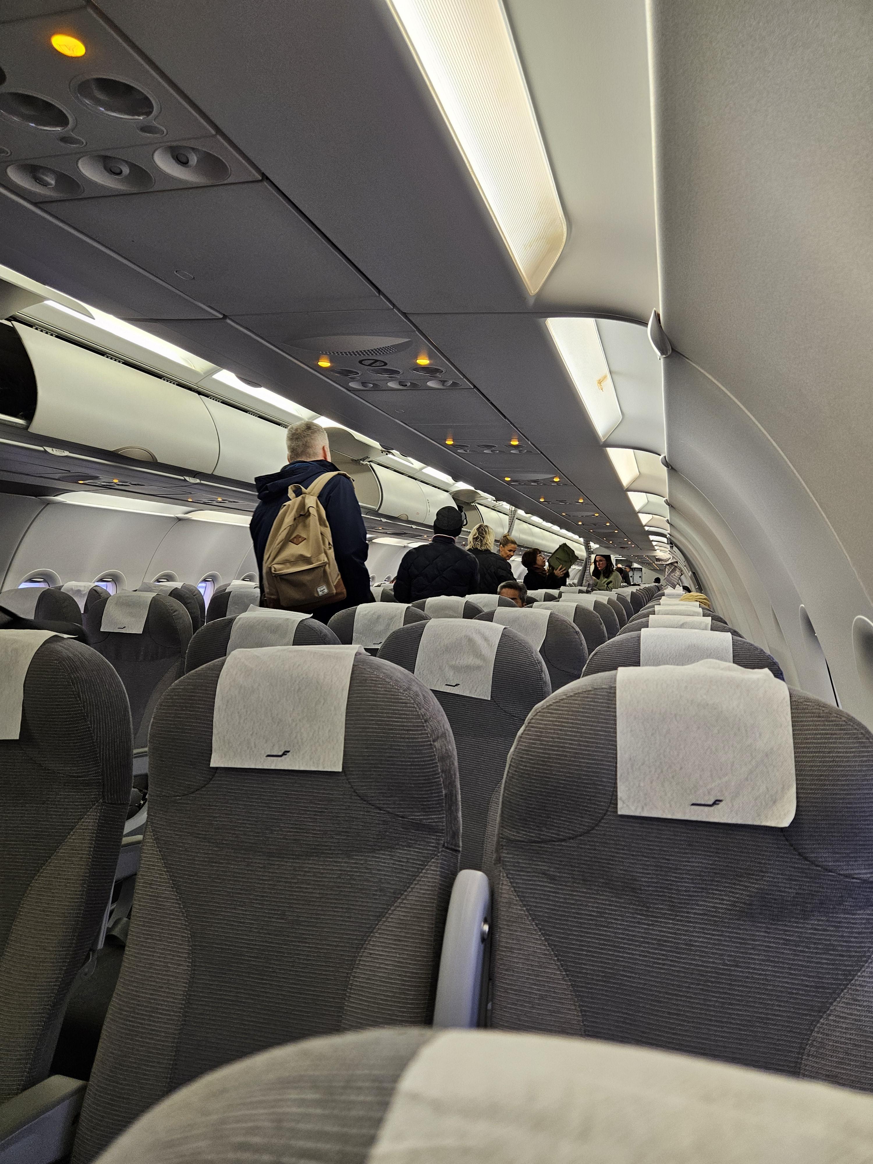 이발로 공항 주기장에서 바라본 공항 건물 보딩은 출발 약 20분 전인 13:25에 시작되어야 했지만 비행기가 약간 지연된 관계로 거의 13:40이 되어서야 시작했습니다. 헬싱키 공항과 마찬가지로 프리보딩, 그룹 1, 그룹 2, 그룹 3, 그룹 4와 같은 순서로 진행되지만 공항이 협소한 관계로 모든 사람이 게이트에 모여있다 보니 지금 보딩 그룹이 뭐고 줄이 어딘지 알 수 없는, 북적거리고 정신이 없었습니다. 항공기에는 스탭카 2대가 붙어 비행기 앞과 뒤, 양쪽에서 보딩을 할 수 있게 했습니다. 그럼에도 200명을 넘게 태우는 항공기기에 탑승 시간이 25분 이상 걸렸는데 이런 부분 때문에 항공기가 조금씩 지연운항을 하는 게 아닌가 싶었습니다. 무엇보다, 미국과는 달리 오버헤드빈 공간이 넓지 않아 기내용 캐리어를 세워서 보관할 수 없고 눕혀서 보관해야만 했기에 오버헤드빈 공간이 부족했습니다. 기내용 캐리어를 가지고 탑승하시는 경우 빨리 탑승하시는 게 좋을 것 같습니다.