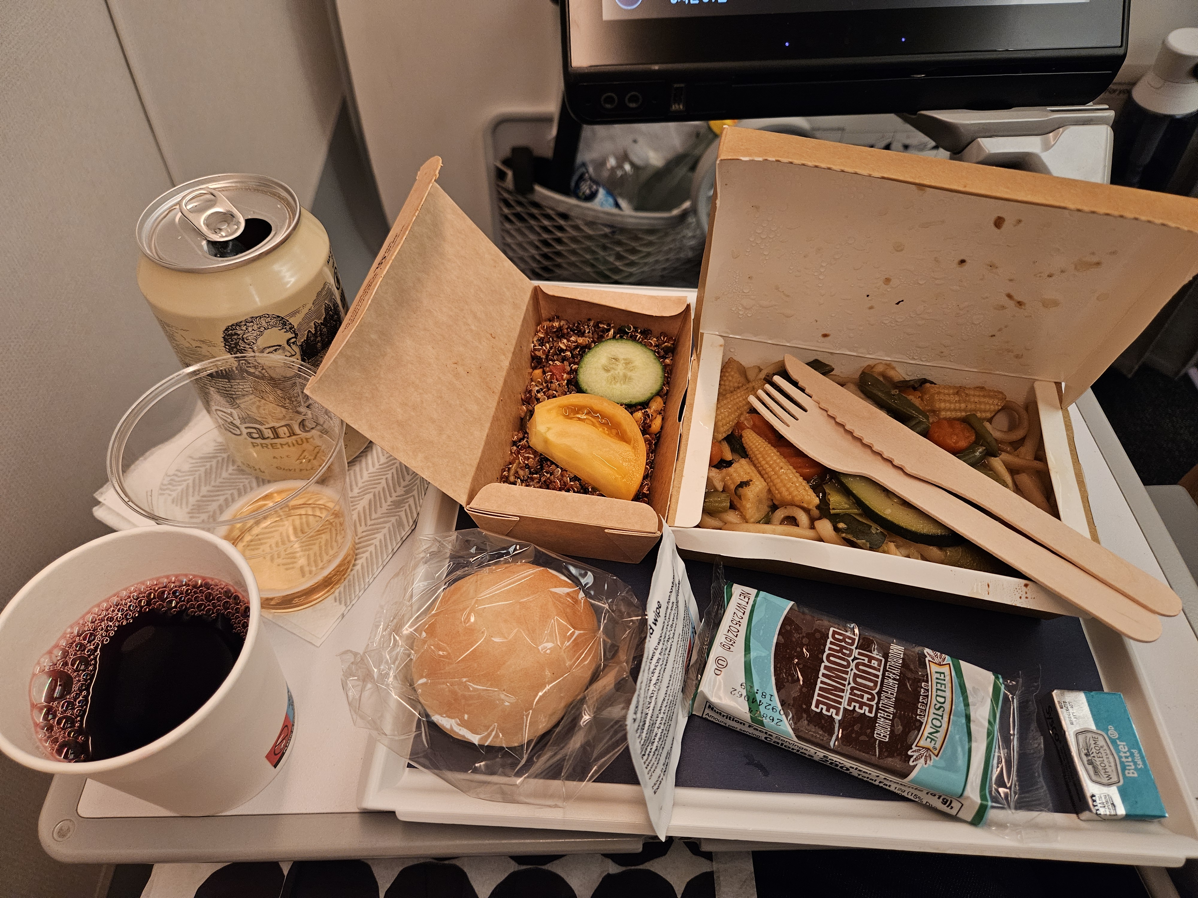 아무래도 가장 아쉬웠던 점은 주류가 한 번만 제공된다는 점입니다. 사실 핀에어에서만 맛볼 수 있는 여러 주류들을 다양하게 즐겨보고 싶은 마음도 있었지만, 또 굳이 돈을 주고 사야 하나 하는 생각도 들어서 제가 주문한 헨델스 맥주 한 캔, 그리고 동반자가 주문한 롱 드링크 한 캔밖에 마시지 않았습니다. 다른 부분은 기내에서 제공되는 식사의 양이 적다는 점입니다. 저의 경우 라운지에서 어느 정도 배를 채우고 가서 큰 문제는 아니었는데 만약 배가 고픈 상태에서 타서 9시간 비행을 해야 한다면.. 배가 고플 것 같습니다.