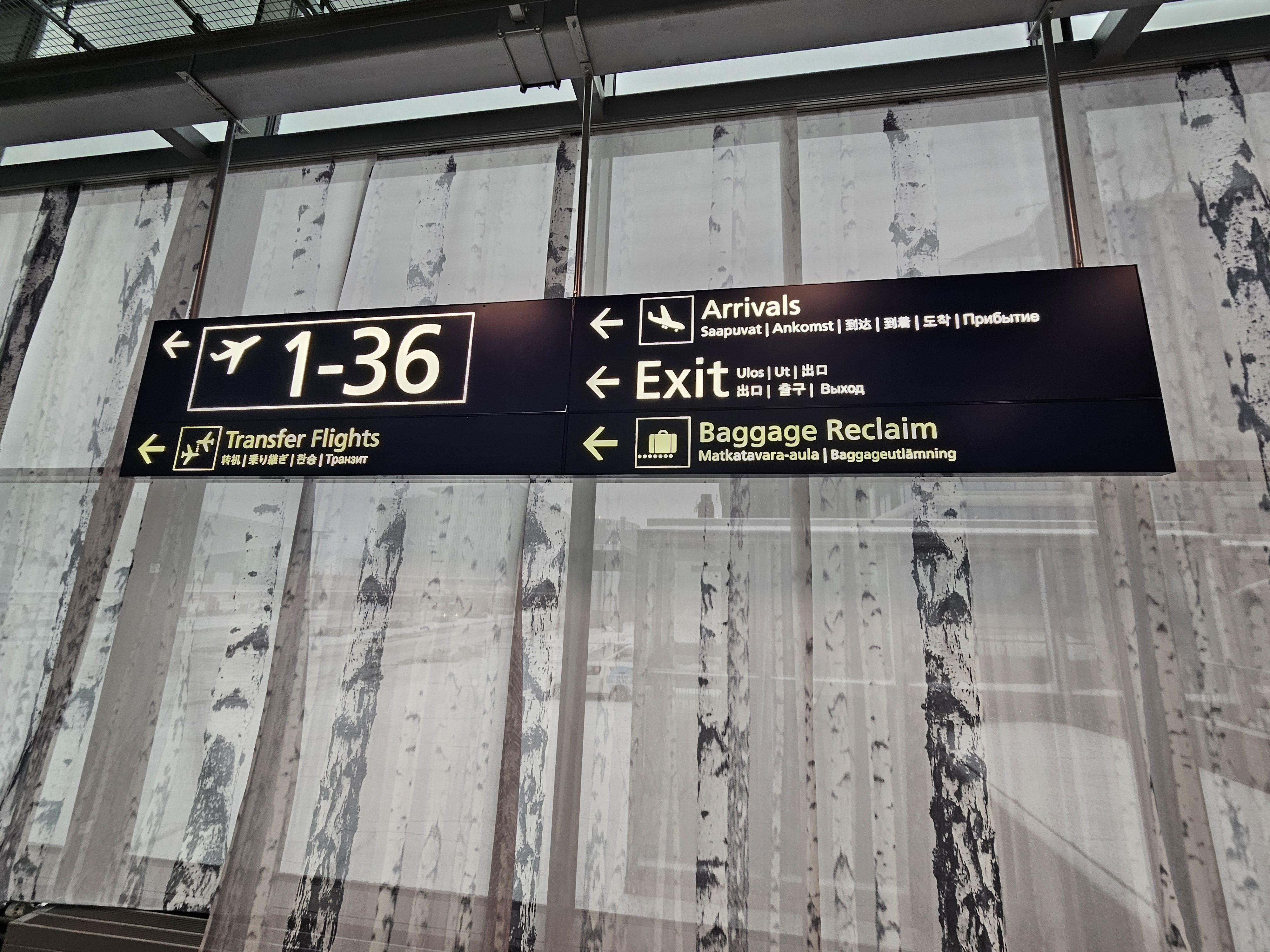 헬싱키 공항 환승 안내 도착하는 날 헬싱키에 눈이 많이 왔음에도 지연 없이 정시에 착륙을 했습니다. 착륙 과정 중에 인상 깊었던 건 바로 기내 조명이었는데요, 오버헤드 빈 위의 기내 조명이 그라데이션처럼 바뀌는데 이 효과가 너무나 오로라 같아서 역시 핀에어 답다는 생각이 들었습니다. 입국 심사 및 환승 또한 어려움이 없었습니다. 환승을 위해서는 가장 먼저 입국심사를 해야 하고요, 핀란드는 유럽 연합 국가이자 솅겐 조약 가입 국가이기에 대한민국 여권은 솅겐 국가 내에서 90일간 무비자가 제공됩니다. 입국 심사를 마치고 나면 환승의 경우 Transfer 사인을, 도착의 경우 Arrival 사인을 따라가시면 됩니다. 헬싱키에 한국인 방문이 많은지 안내판에 한국어도 볼 수 있고요. 환승객의 경우 짐을 따로 찾아서 다시 부칠 필요 없이 바로 에어사이드로 가서 환승할 비행기에 탑승하면 됩니다. 도착의 경우 짐을 찾고 세관을 통과 후 나가면 되고요. 헬싱키 공항에서의 환승 및 입국 경험은 전반적으로 좋은 편이었습니다.