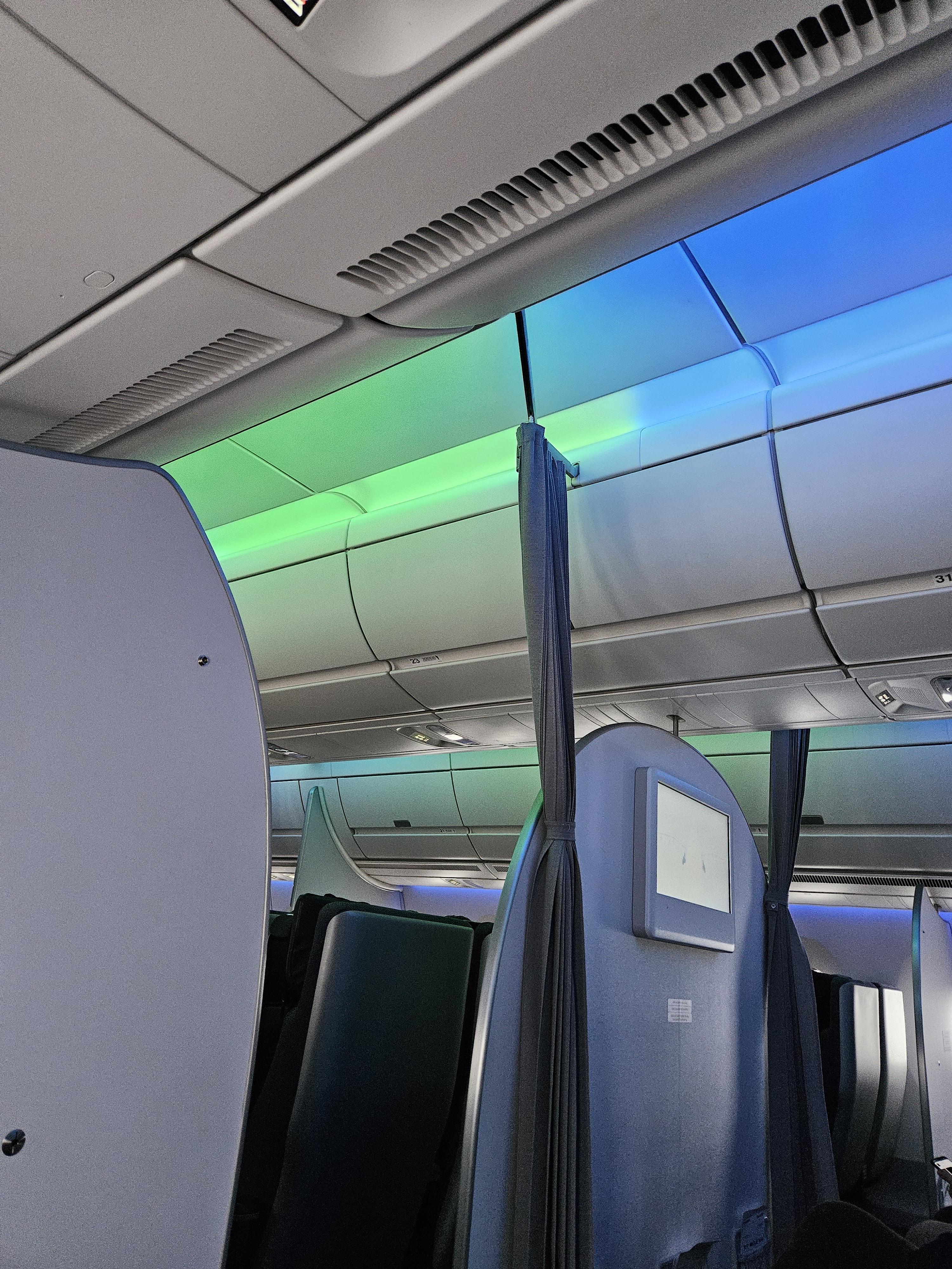 아이슬란드 상공에서 본 희미한 오로라 이번 비행에서 가장 큰 기내 엔터테인먼트는 아무래도 기내에서 보는 오로라가 아니었을까 싶습니다. 미국에서 출발해 헬싱키로 향하는 핀에어 항공 편들은 대부분 아이슬란드 중북부를 거쳐 헬싱키로 향하게 되는데 이때 항공기의 위도가 오로라를 충분히 관측할 수 있는 위도입니다. 또한 날씨의 영향도 많지 않다 보니 오로라 지수만 높으면 오로라를 관측하기 어렵지 않은 것 같습니다. 헬싱키를 출발해 미국으로 향하는 항공 편들은 더 높은 위도로 비행을 하기 때문에 이 항공편들에서도 오로라를 관측할 수 있고요. 헬싱키 행의 경우 진행방향 기준 왼쪽의 창가석, 미국행의 경우 진행방향 기준 오른쪽의 창가석에 앉으셔야 합니다. 저의 경우 오로라가 아주 강하지 않아서 엄청나게 황홀한 경험은 아니었으나, 그럼에도 비행 중에 오로라를 보는 것은 멋진 경험인 것 같습니다. 다만 헬싱키와 한국을 오가는 항공편의 경우 우크라이나 러시아 전쟁으로 인해 제약사항이 많은데요, 우선 헬싱키 출발 인천행 노선은 주로 중앙아시아를 경유하는 항로로 비행을 하기에 오로라를 보는 게 불가능하고요, 인천 출발 헬싱키 노선의 경우 편서풍이 강한 경우 중앙아시아를 경유하는 것이 아닌 동해로 나가 일본을 거쳐 알래스카 위로 넘어가는 북극 항로를 이용하게 되는데 이 때는 오로라를 볼 수 있을 것 같습니다.