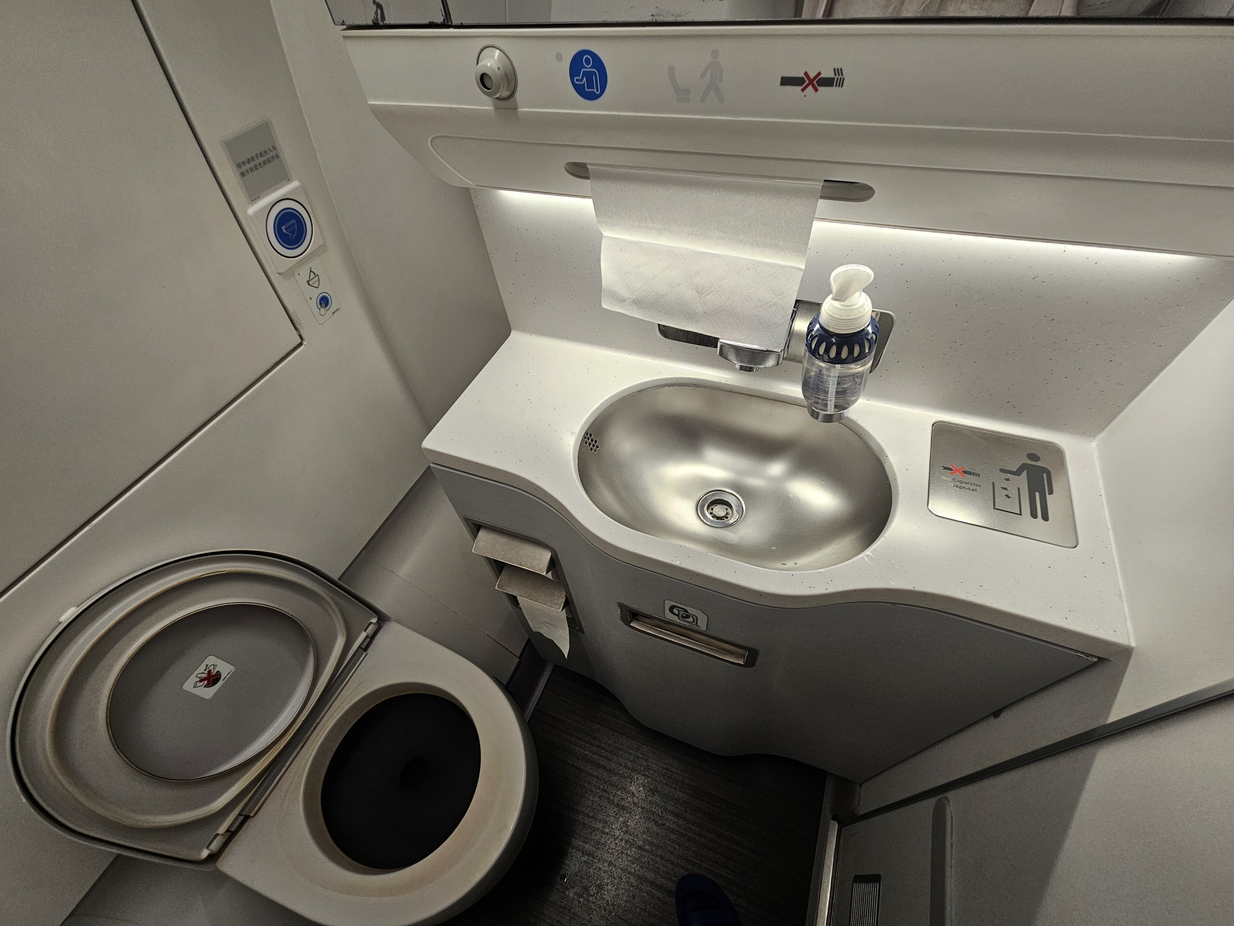 핀에어 기내 어매니티 담요(좌), 이어폰(중), 핀에어 A350-900 화장실 핀에어 장거리 이코노미클래스는 기본 어매니티로 담요와 이어폰이 제공됩니다. 많은 유럽 항공사들과 비슷하게 최소한의 어매니티만 제공합니다. 군더더기 없는 디자인으로 유명한 북유럽 답게 군더더기 없는 서비스를 제공한다고 볼 수도 있겠네요. 화장실의 경우 이코노미 캐빈 중간과 이코노미 캐빈 제일 뒤쪽의 화장실을 이용합니다. 화장실도 물론 핸드워시 하나만 구비되어 있는 아주 심플한 화장실이었습니다. 다만 핀에어가 카타르 항공, 베트남 항공과 함께 A350 항공기를 가장 처음으로 인도한 항공사 중 하나고, 제가 탄 항공기도 거의 9년이 되어가는 항공기기에 세월의 흔적은 숨길 수 없었습니다. 화장실과 관련된 특이사항으로는 프리미엄 이코노미 클래스에는 전용 화장실이 없어 프리미엄 이코노미 클래스 승객도 이코노미 화장실을 이용해야 했습니다. 확실히 이런 디테일은 프리미엄 이코노미 클래스에도 전용 화장실을 마련해 둔 일본항공이나 ANA와 같은 항공사들이 더 나은 것 같습니다.
