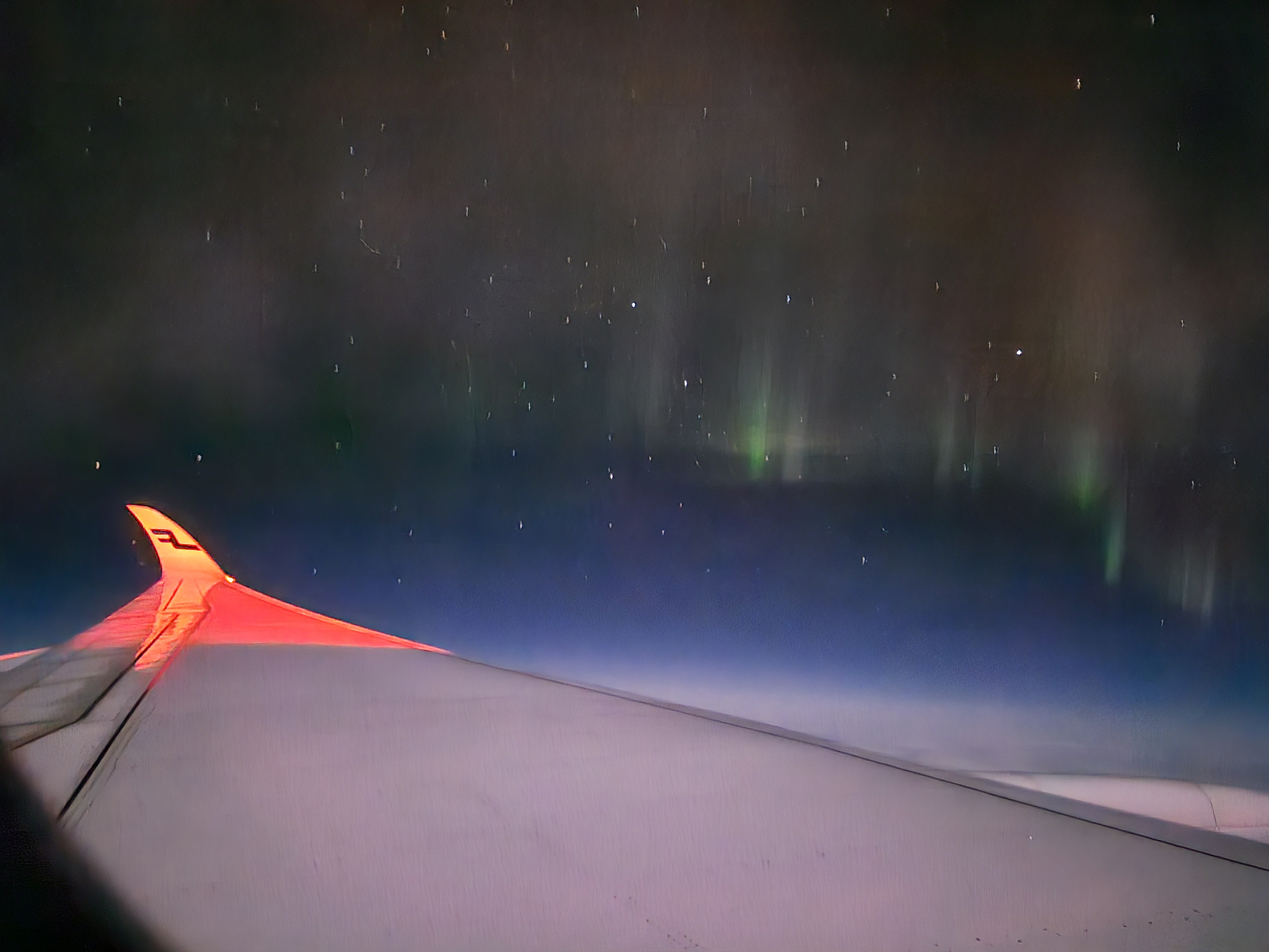 아이슬란드 상공에서 본 희미한 오로라 이번 비행에서 가장 큰 기내 엔터테인먼트는 아무래도 기내에서 보는 오로라가 아니었을까 싶습니다. 미국에서 출발해 헬싱키로 향하는 핀에어 항공 편들은 대부분 아이슬란드 중북부를 거쳐 헬싱키로 향하게 되는데 이때 항공기의 위도가 오로라를 충분히 관측할 수 있는 위도입니다. 또한 날씨의 영향도 많지 않다 보니 오로라 지수만 높으면 오로라를 관측하기 어렵지 않은 것 같습니다. 헬싱키를 출발해 미국으로 향하는 항공 편들은 더 높은 위도로 비행을 하기 때문에 이 항공편들에서도 오로라를 관측할 수 있고요. 헬싱키 행의 경우 진행방향 기준 왼쪽의 창가석, 미국행의 경우 진행방향 기준 오른쪽의 창가석에 앉으셔야 합니다. 저의 경우 오로라가 아주 강하지 않아서 엄청나게 황홀한 경험은 아니었으나, 그럼에도 비행 중에 오로라를 보는 것은 멋진 경험인 것 같습니다. 다만 헬싱키와 한국을 오가는 항공편의 경우 우크라이나 러시아 전쟁으로 인해 제약사항이 많은데요, 우선 헬싱키 출발 인천행 노선은 주로 중앙아시아를 경유하는 항로로 비행을 하기에 오로라를 보는 게 불가능하고요, 인천 출발 헬싱키 노선의 경우 편서풍이 강한 경우 중앙아시아를 경유하는 것이 아닌 동해로 나가 일본을 거쳐 알래스카 위로 넘어가는 북극 항로를 이용하게 되는데 이 때는 오로라를 볼 수 있을 것 같습니다.