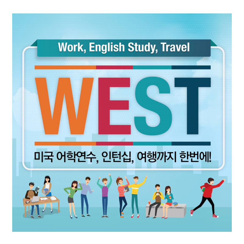 WEST 프로그램은 한국정부와 미국정부의 협정에 따라 2008년부터 시작된 대학교 재학생 및 1년 이내 졸업생에게 최소 6개월에서 최장 12개월까지 미국에서 어학연수 및 인턴십 기회를 제공하는 프로그램입니다.