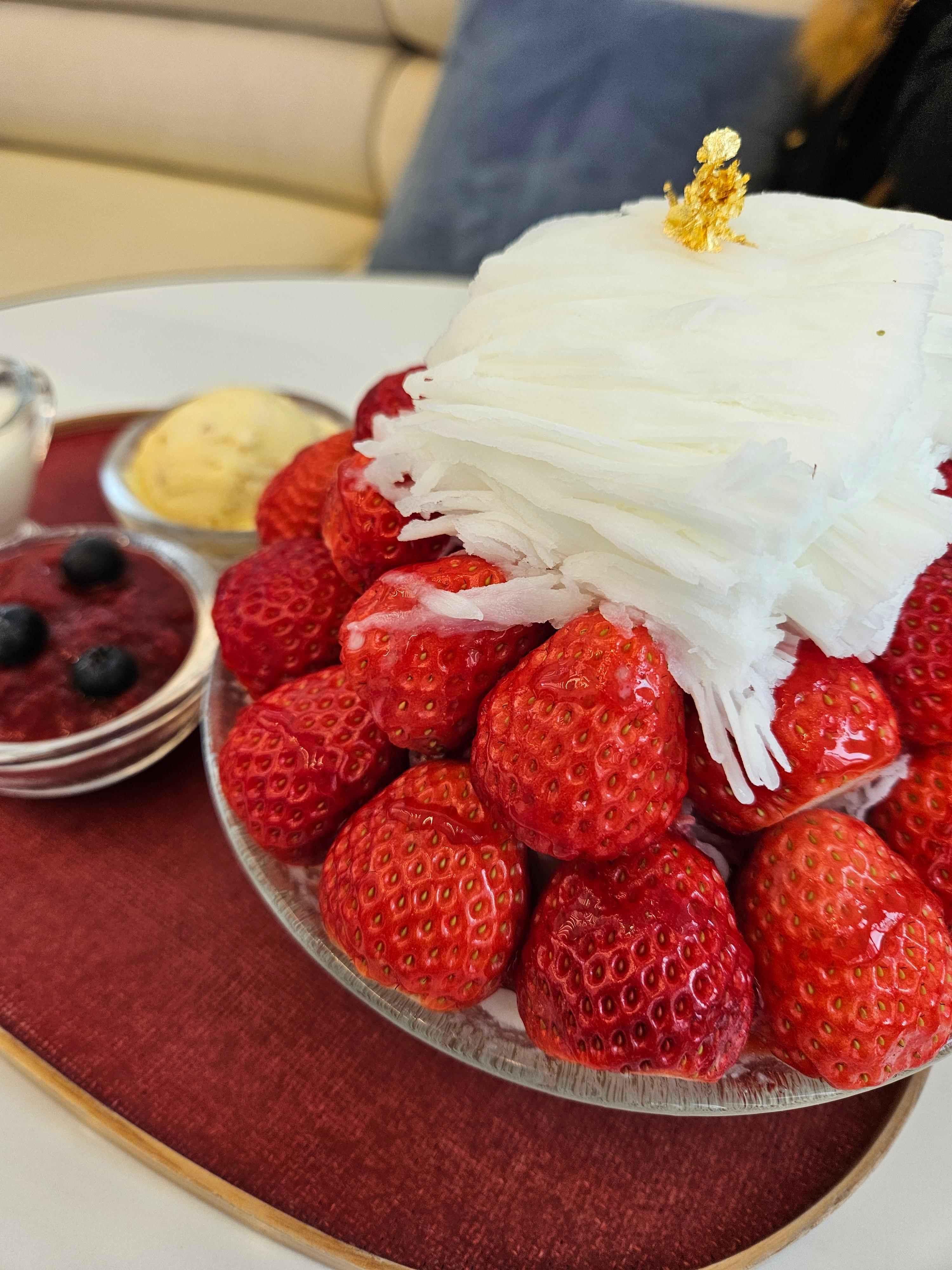 호텔오노마 오토그래프콜렉션 시설안내장과 딸기빙수 호텔 내부 시설로는 수영장과 피트니스 센터, 사우나가 있습니다. 이 중 수영장과 피트니스 센터는 투숙객은 무료로 이용할 수 있으며 사우나는 유료로 제공이 됩니다. 호텔 오노마의 수영장과는 참 인연이 없는 게, 지금까지 4번 방문하면서 10박 정도를 했는데, 이런저런 이유로 수영장을 이용해 본 적은 없었습니다. 이번에도 투숙 중에 수영장 정기점검일이 껴 있어서 또 사용을 못했습니다. 사우나도 이용해 본 적이 없고요. 피트니스 센터는 종종 방문하는데, 피트니스 센터에는 외부에서 신던 신발은 신지 못하게 하는 정책이 있습니다. 따라서 실내용 운동화를 챙겨가야 합니다. 호텔 오노마의 피트니스 센터에는 테크노 짐 기구들이 있고 삼성 헬스 연동도 되어서 항상 편리하게 이용하고 있습니다. 제가 방문했을 때는 1층의 카페에서 딸기 빙수를 팔고 있기에 먹어봤습니다.