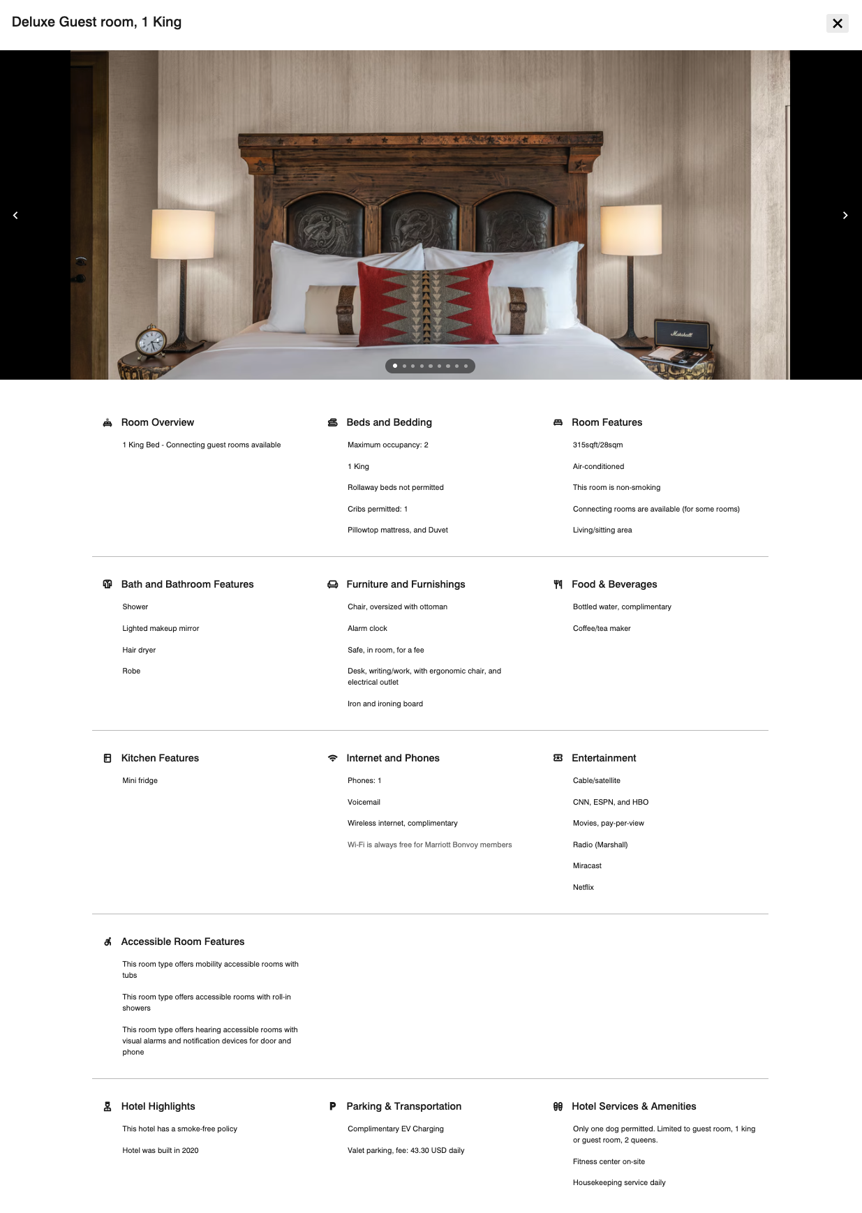 호텔 드로버 오토그래프 컬렉션 1 킹 게스트룸 정보, image courtesy of Marriott 저는 이 호텔을 35000포인트 숙박권을 이용해 가장 기본방인 1 킹 게스트 룸을 주중숙박으로 예약했습니다. 메리어트 본보이 포인트의 경우 1포인트의 가치를 대략 0.7센트 정도로 보기에 35000 포인트면 대략 245달러의 가치를 지니는데요, 위에서 언급한 대로 호텔 드로버 오토그래프 컬렉션은 유상숙박 대비 포인트 숙박의 가격이 저렴한 편입니다. 제가 이 호텔을 예약할 때의 유상숙박 가격이 환불이 되지 않는 최저가 기준으로 세금 포함 527달러였으니 1포인트를 대략 1.5센트의 가치로 예약했으니 아주 좋은 가치로 포인트를 사용한 셈이었습니다. 실제 포인트 숙박 요금은 32000포인트였으나 숙박권이 전혀 아깝지 않게 예약했다고 할 수 있습니다. 참고로 이 호텔의 기본방 포인트 숙박의 가격은 30000포인트 초중반에 시작합니다.