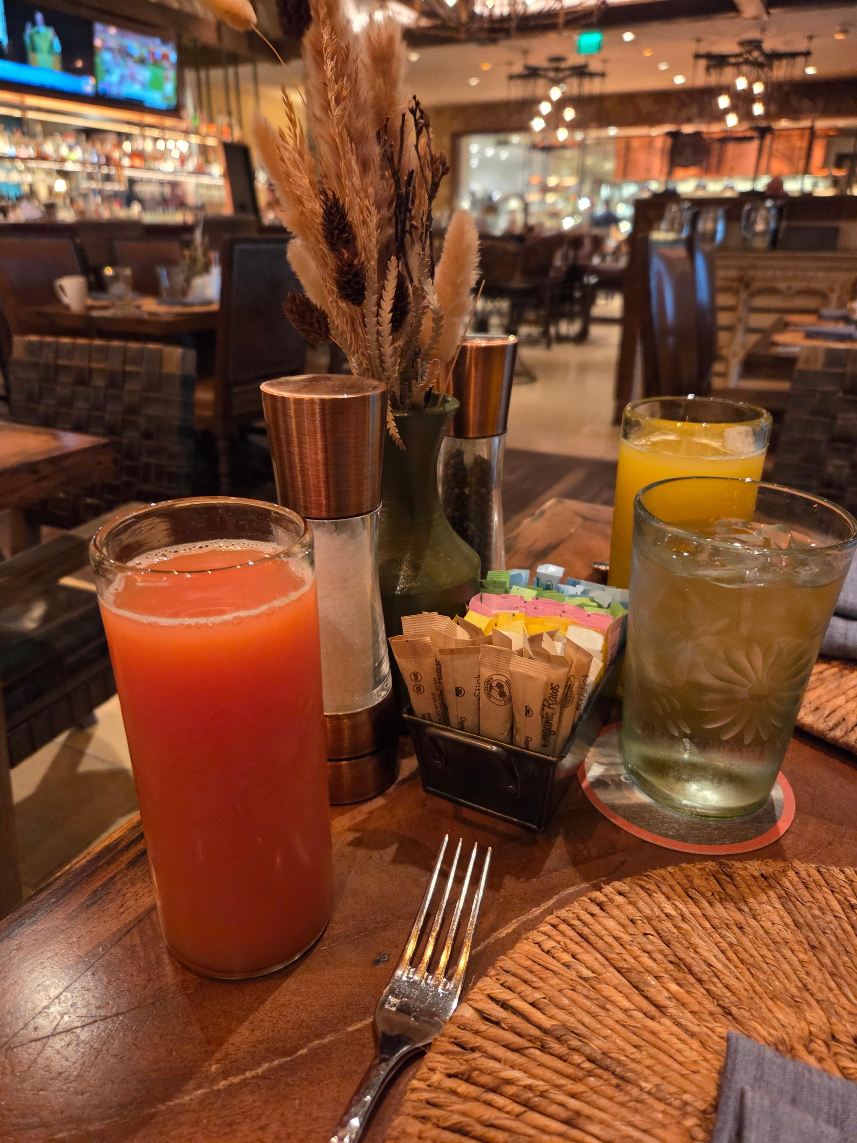 호텔 드로버 오토그래프 컬렉션 97 WEST Kitchen & Bar 내부 2 조식은 1층에 위치한 식당 97 WEST Kitchen & Bar에서 제공됩니다. 97 WEST Kitchen & Bar은 평일의 경우 오전 7시부터 오전 11시까지, 주말과 공휴일의 경우에는 오전 8시부터 오전 11시까지 조식 메뉴가 제공됩니다. 97 WEST Kitchen & Bar도 전체적인 호텔 분위기에 맞는 인테리어로 꾸며져 있었습니다. 나무와 가죽, 메탈을 주요 재료로 해서 브라운 톤으로 잘 꾸며져 텍사스 느낌이 물씬 났고요, 코스터 또한 자체 제작한 코스터를 사용할 만큼 디테일도 훌륭한 식당이었습니다.
