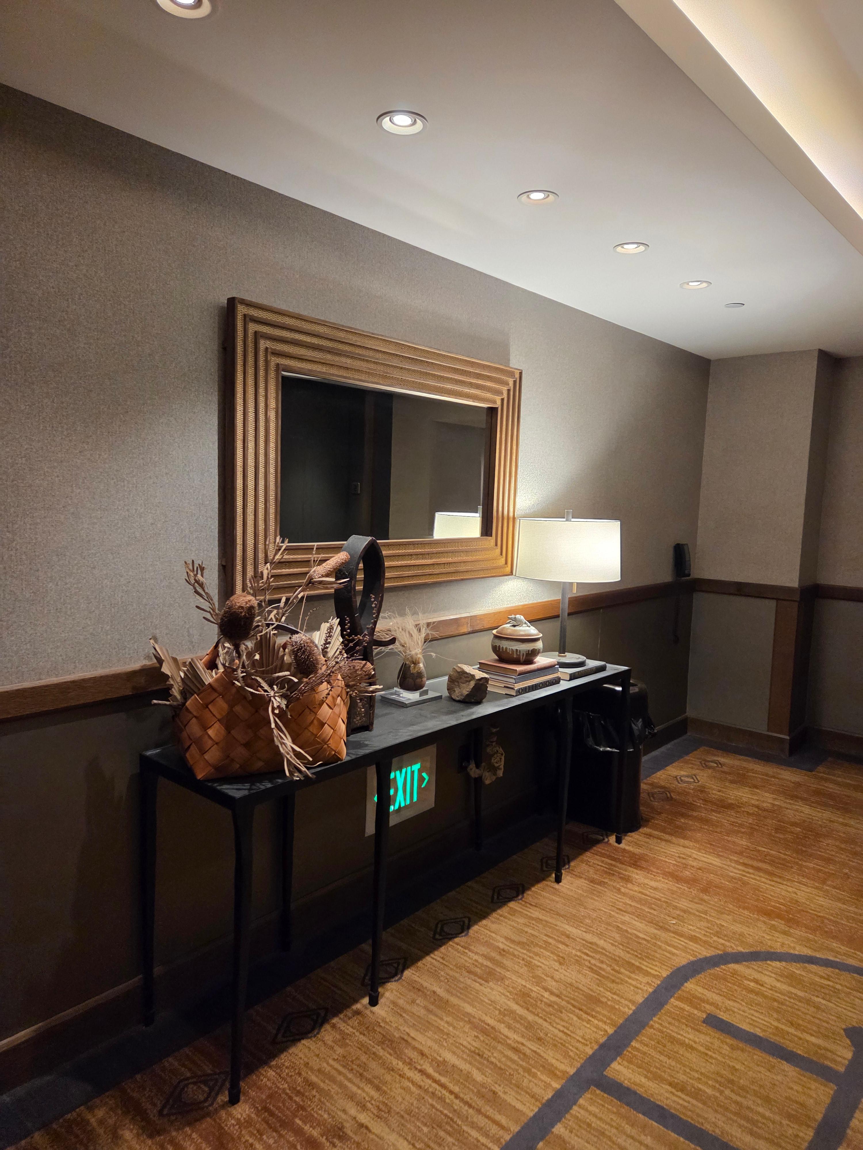 호텔 드로버 오토그래프 컬렉션 복도 인테리어 마지막으로 호텔 로비와 체크인 카운터의 분위기에서 말해보자면, 텍사스의 느낌을 물씬 느낄 수 있었습니다. 고풍스럽다거나 깔끔하다기보다는 서부시대의 와일드함이 약간은 느껴지는 인테리어였기에 오히려 사람들이 북적거려도 인테리어와 잘 어울리는 느낌이 있었습니다. 어쩌면 많은 사람들이 청바지에 텍사스 부츠를 신고 있어서 더 그랬을 수도 있겠네요. 전반적으로 나무와 가죽 재질을 많이 활용했는데 이 호텔이 위치해 있는 포트워스 스톡야드와 잘 어울려서 인상적이었습니다.