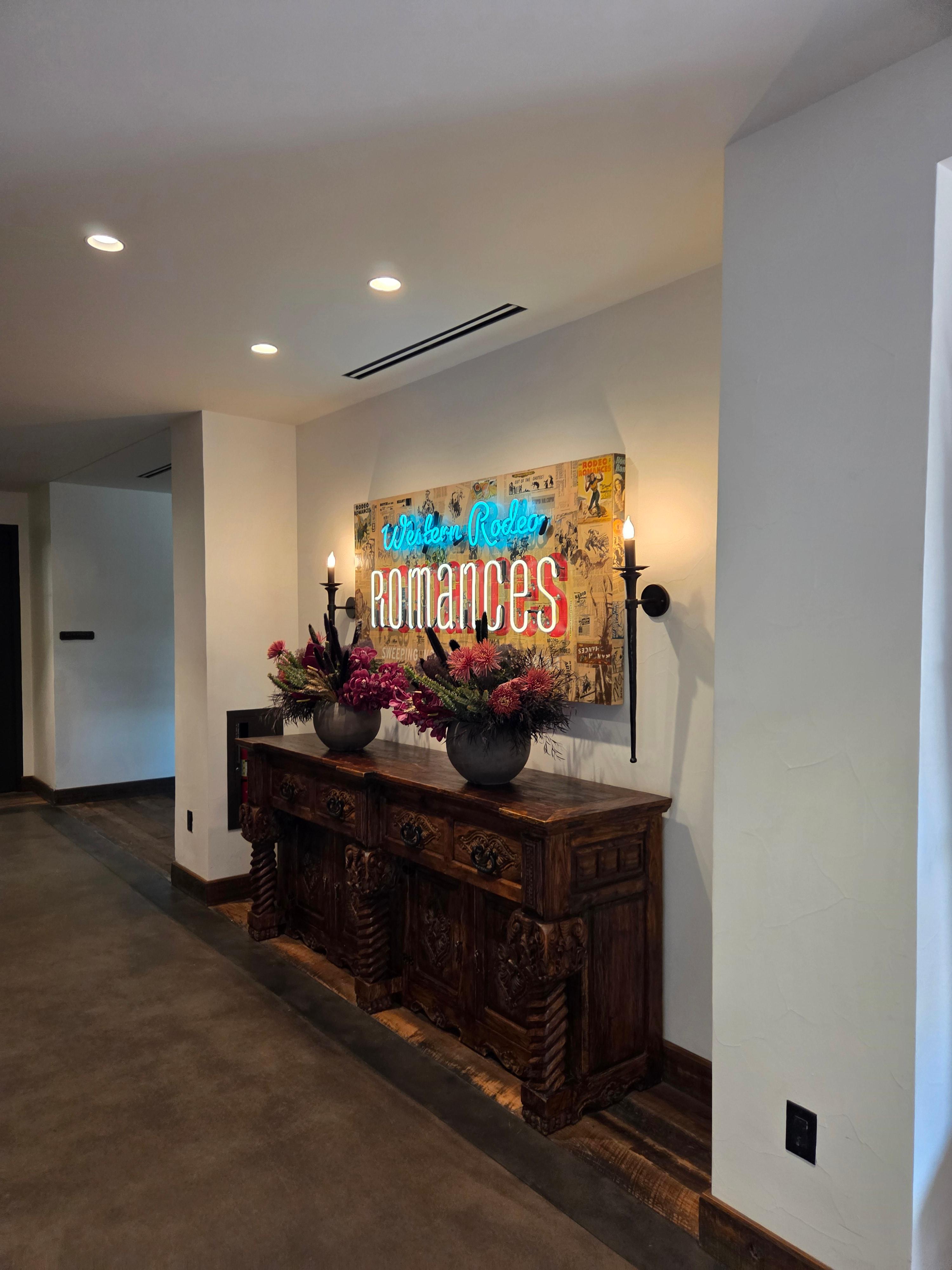 호텔 드로버 오토그래프 컬렉션 내부 장식 호텔 드로버 오토그래프 컬렉션에 머무르면서 인상적인 부분 중 하나가 바로 스태프였습니다. 미국 호텔은 아무리 고급 호텔로 가더라도 직원들이 친절할 거라는 기대를 크게 하지 않는 편인데요, 이 호텔은 약간 달랐습니다. 호텔 드로버 오토그래프 컬렉션의 테마가 텍사스라서 그런지 미국 남부지역의 따뜻한 환대와 친절함을 의미하는 Southern Hospitality까지 호텔에서 느낄 수 있었습니다. 체크인 카운터의 직원이나 발렛파킹을 도와주는 프런트에 있는 직원분들도 친절했지만, 호텔 1층의 바를 지나갈 때 친절하게 인사를 해준다던지, 아침 식사를 마쳤을 때 식당 서버분께서 혹시 물이 더 필요하면 To-go water를 좀 챙겨줄까라고 묻는다던지 하는 일들이 있었습니다. (개인적으로 To-go water라는 말은 이곳에서 처음 들어본 것 같습니다.) 이런 스태프들이 아마도 이 호텔에서의 투숙경험과 남부 텍사스 테마라는 호텔의 정체성을 완성시키는 것 같습니다.