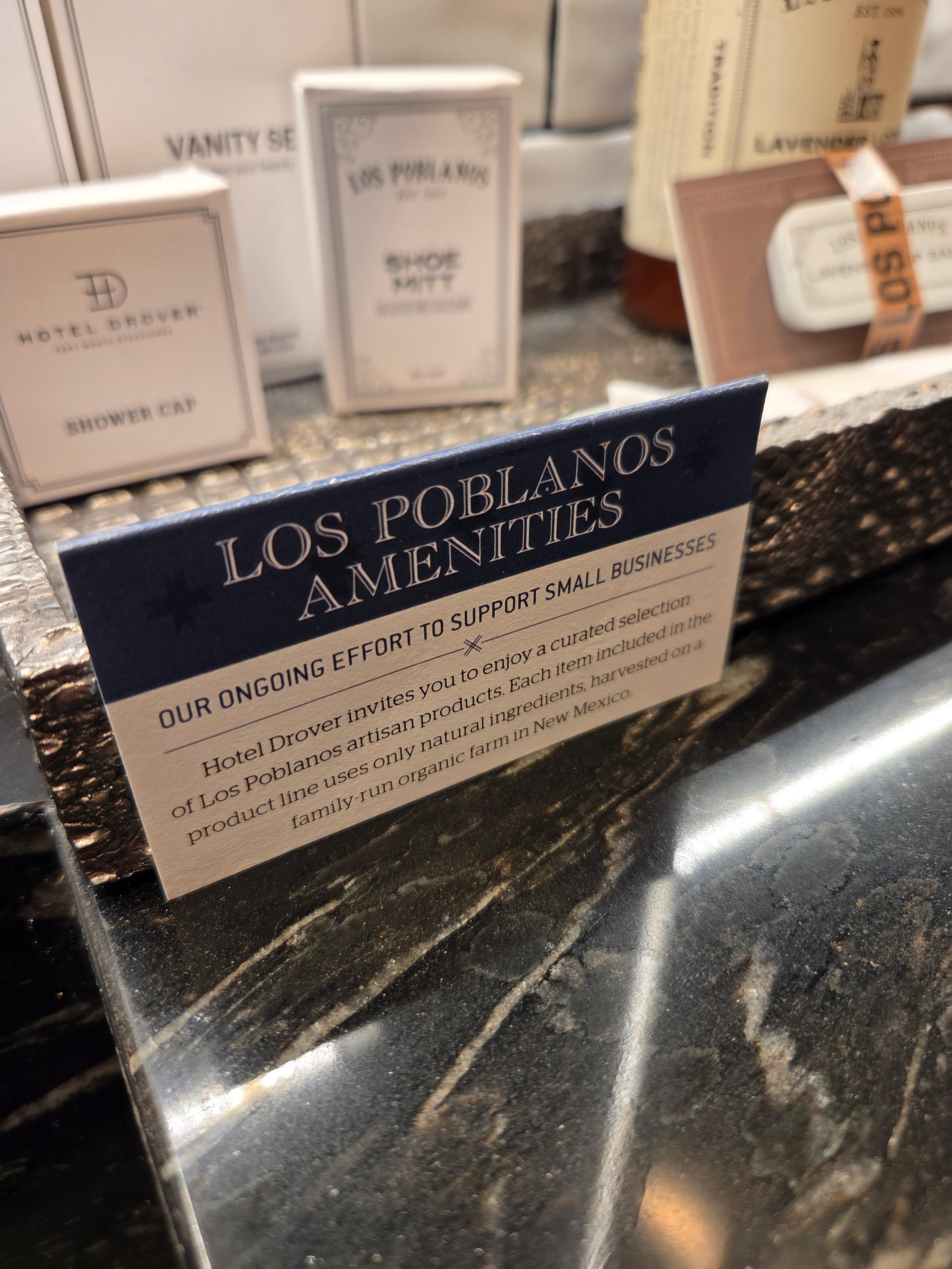 호텔 드로버 오토그래프 컬렉션 욕실 어매니티 2 욕실 어매니티로는 뉴멕시코 앨버커키 인근에서 유기농 라벤더 농장을 기반으로 한 부티크 인·농장 브랜드인 Los Poblanos 제품이 비치되어 있었습니다. 이 제품들이 가격이 비싼 제품들은 아니지만 옛 텍사스와 결을 같이 하는 뉴멕시코의 로컬 제품을 사용했다는 점이 이 호텔의 정체성과 잘 맞는 느낌이어서 좋았습니다. 이런 브랜딩과는 별개로 이 브랜드의 제품들 또한 라벤더의 진한 향이 아주 인상적이어서 이 제품들로 손을 씻거나 샤워를 하고 나면 은은하게 풍기는 라벤더 향이 심신을 안정되게 해 주어서 좋았습니다. 방에 비치된 이 브랜드의 기본 제품들로는 핸드워시, 바디 로션, 바디 워시, 샴푸, 컨디셔너, 바디 비누, 배쓰 솔트, 립밤, 슈미트 등이 있었습니다. 그 외의 욕실 어매니티로는 드라이어, 2벌의 베쓰로브, 화장솜과 면봉 등이 들어있는 베니티 킷, 샤워 캡이 있었고 치약 칫솔 세트도 1개가 방에 기본적으로 비치되어 있다는 점이 특색 있었습니다.
