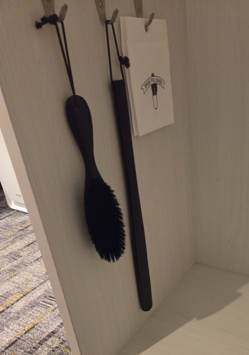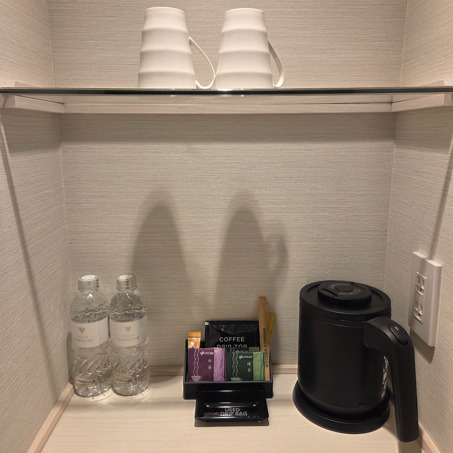 호텔 빌라 폰테누 그랜드 하네다 공항 Moderate 퀸 룸 어매니티 호텔 빌라 폰테누 그랜드 하네다 공항의 Moderate 퀸 룸에서는 딱 필요한 어매니티만 제공이 됩니다. 룸 어매니티로는 일회용 슬리퍼가 제공이 되고, 호텔에 온천이 있는 만큼 온천을 이용할 때 이용할 수 있는 관내복과 다회용 슬리퍼도 제공이 됩니다. 옷장에는 구두 솔, 구두 주걱, 슈 샤이너가 있었고, 가습기 겸 공기청정기가 있어 건조하지 않게 투숙할 수 있었습니다. 커피 스테이션에는 홍차와 녹차 티백과 드립커피가 있었고 사용한 드립커피 백이나 티백을 놓을 수 있는 트레이도 마련되어 있었습니다. 물은 500ml 페트병으로 2개가 제공되었고 머그컵 2개와 전기 주전자도 준비되어 있었습니다.