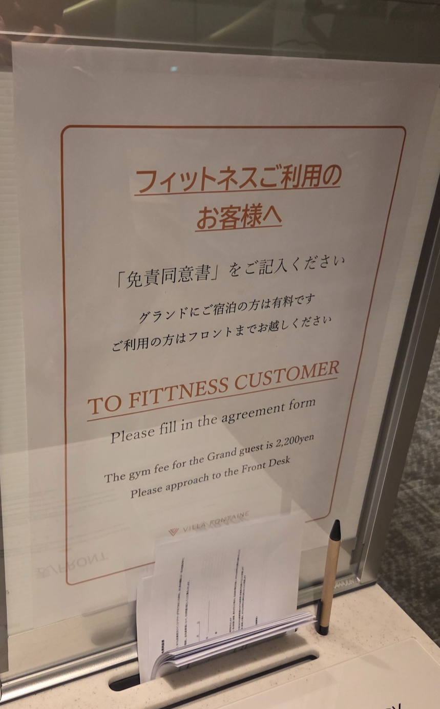 호텔 빌라 폰테누 그랜드 하네다 공항 피트니스 피트니스의 경우 호텔 빌라 폰테누 그랜드 하네다 공항 6층에 위치하며 24시간 운영합니다. 피트니스는 넓고 쾌적한 편인데요, 문제는 투숙객에게도 이용이 무료가 아니라는 사실입니다. 호텔 빌라 폰테누 그랜드 하네다 공항 투숙객의 경우 하루에 2,200엔을 내고 이용할 수 있습니다.
