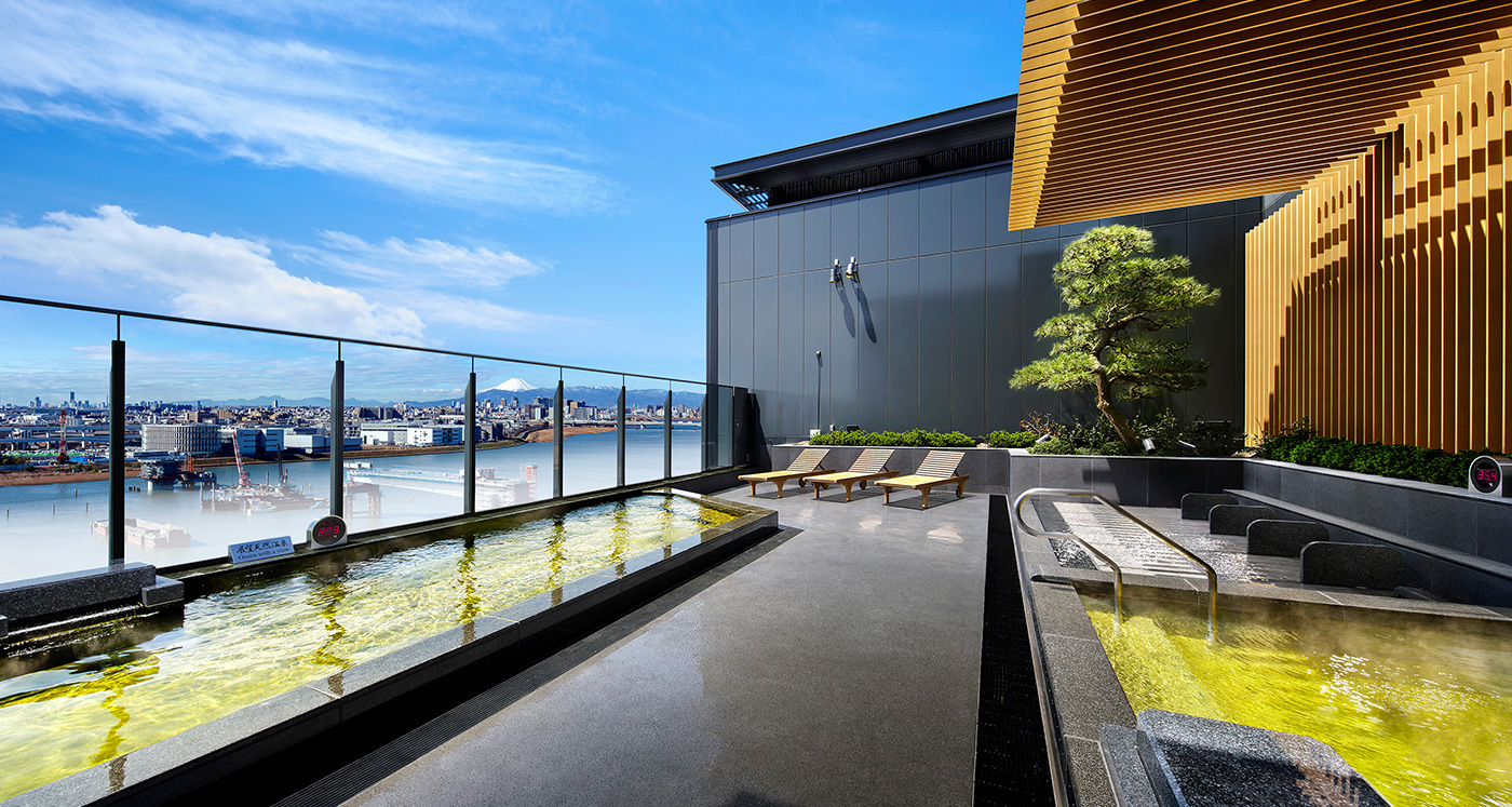 호텔 빌라 폰테누 그랜드 하네다 공항 온천 이즈미 텐쿠노유 (c) shopping-sumitomo-rd.com/haneda/spa-izumi 호텔 빌라 폰테누 그랜드 하네다 공항의 가장 유명한 시설로는 온천 이즈미 텐쿠노유가 있습니다. 이즈미 텐쿠노유(Izumi Tenku no Yu)는 호텔 최상층인 12층에 위치한 천연 온천 시설입니다. 24시간 운영하지만 오전 10시부터 12시 30분까지는 청소 시간으로 일부 시설 이용이 제한됩니다. 이즈미 텐쿠노유의 노천탕에서는 하네다 공항의 비행기 이착륙을 조망할 수 있고 날씨가 좋으면 후지산까지 볼 수 있습니다. 노천탕 외에도 실내탕, 탄산탕, 제트 스파 외에도 드라이 사우나, 암반욕, 마사지 서비스를 제공하며 암반욕의 경우 800엔의 추가 요금을 내야 합니다. 이즈미 텐쿠노유 정상요금은 4,800엔이지만 호텔 빌라 폰테누 그랜드 하네다 공항 투숙객의 경우 목욕 타월 대여를 포함해 성인 2,500엔, 아이는 1,250엔에 이용이 가능하며 투숙 기간 중에 재입장이 가능합니다. 또한 클럽 빌라 폰테누회원은 추가 200엔 할인을 받을 수 있습니다. 이즈미 텐쿠노유에 대한 자세한 정보는 웹사이트를 참고하시기 바랍니다.