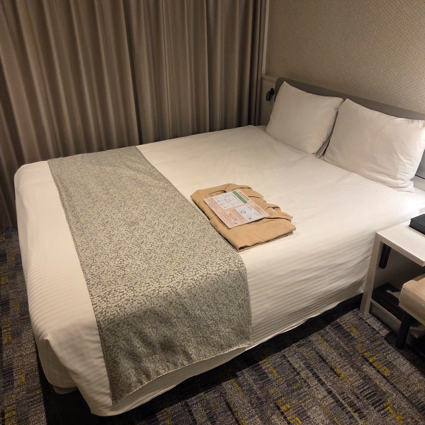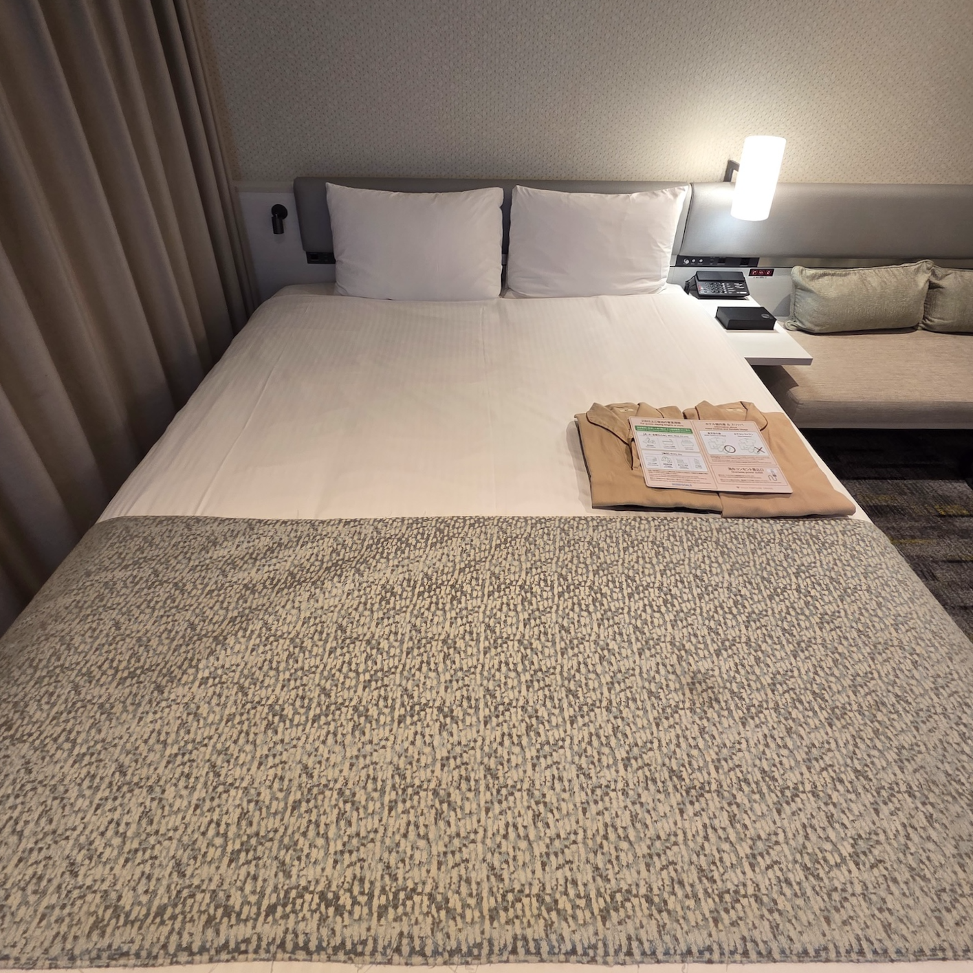호텔 빌라 폰테누 그랜드 하네다 공항 Moderate 퀸 룸 가는 길 호텔 빌라 폰테누 그랜드 하네다 공항의 Moderate 퀸 룸은 넓지는 않지만 단기간 머물기에 부족하지는 않은 공간이었습니다. 호텔 빌라 폰테누 그랜드 하네다 공항이 2022년 12월에 오픈한 만큼 룸 내부의 모든 시설들은 깨끗하게 관리되는 편이었고 청소 상태도 좋았습니다. 다만, 캐리어를 펼쳐놓고 사용하시는 분이라면 캐리어 2개를 펼쳐놓으면 문으로 출입이 불가능할 정도로 절대적인 공간이 넓지는 않습니다. 따라서 2명이 잠만 자기 위해서 투숙하는 경우 Moderate 퀸 룸도 나쁘지 않지만, 2명이서 더 긴 시간 방 안에서 머무셔야 하는 상황이라면 Moderate 퀸 룸보다는 조금 더 넓은 Superior 퀸 룸이나 이보다도 더 넓은 Superior 킹 룸을 이용하시는 걸 추천드립니다. 2박 이상 하시거나 24시간 머무시는 경우 1박에 1,000 ~ 3,000엔 정도의 가치는 충분히 하지 않을까 싶습니다.