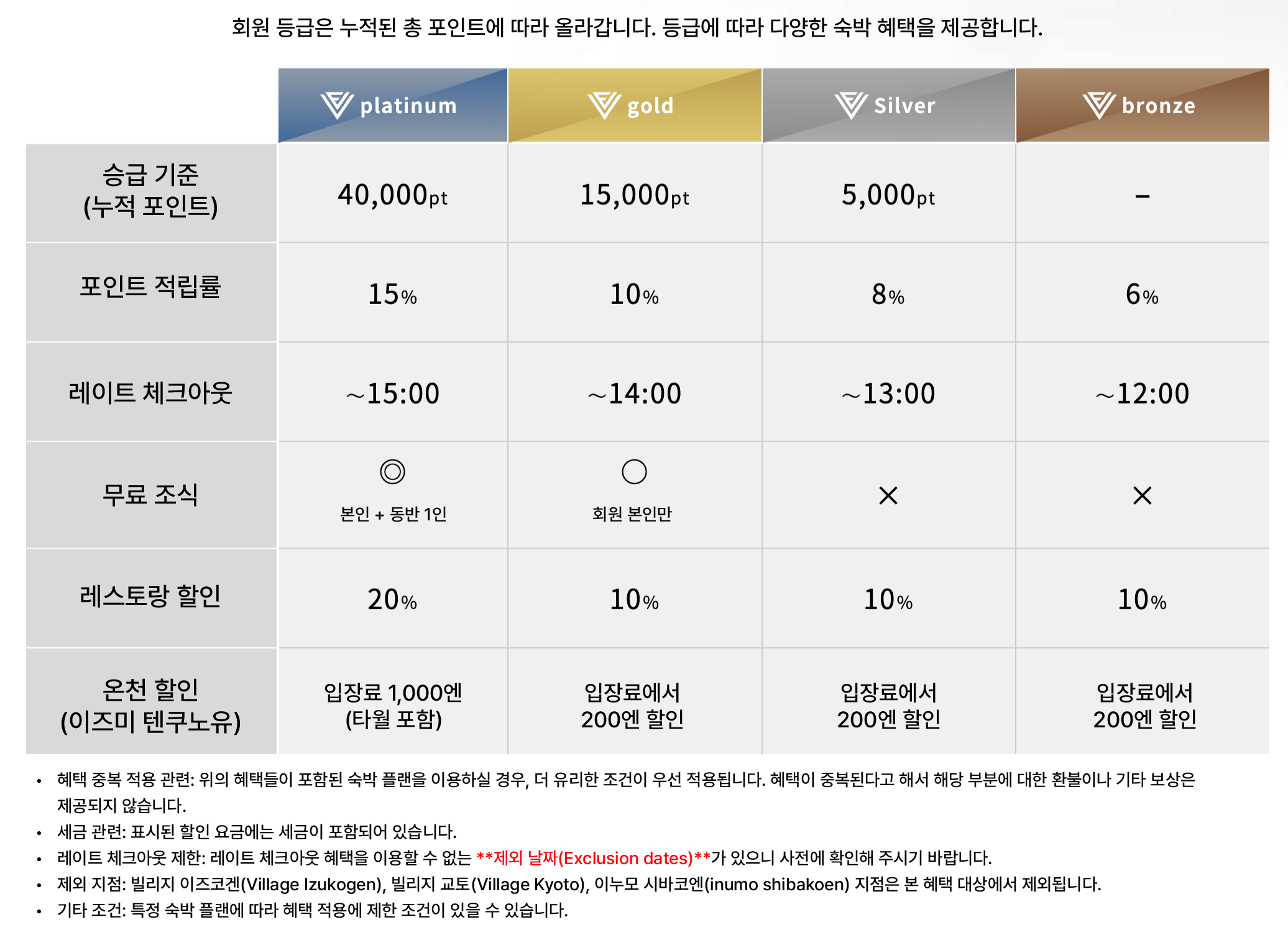 - 숙박 시점 호텔 멤버십 등급 & 혜택