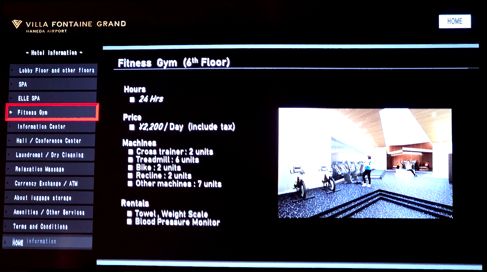 호텔 빌라 폰테누 그랜드 하네다 공항 피트니스 안내
