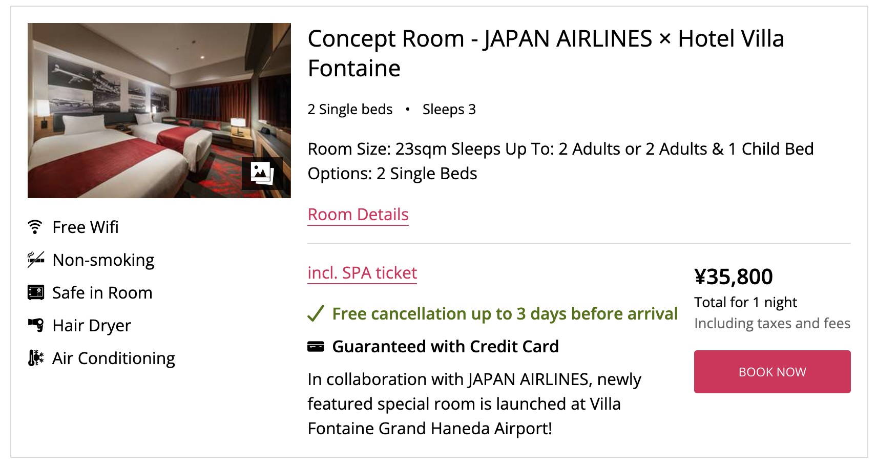 호텔 빌라 폰테누 그랜드 하네다 공항 컨셉 룸 (c) hvf.jp 호텔 빌라 폰테누 그랜드 하네다 공항 공식 홈페이지에서는 60일 전 예약, 조식 포함 요금, 온천 포함 요금, 24시간 숙박 요금 등 다양한 요금이 있으니 예약 전 공식 홈페이지와의 가격을 비교해 예약하시는 걸 추천드립니다. 또한 피아프로 캐릭터즈 테마 룸, 세서미 스트리트 테마 룸, 일본항공 테마 룸, ANA 보잉 737, 777 테마 룸 등 다양한 테마 룸도 존재하기 때문에 관심이 있으시면 살펴보시는 걸 추천드립니다. 참고로 위에서 언급한 비수기 최저가 가격 기준선은 계절과 시즌에 따라서 변동될 수 있음을 알려드립니다.