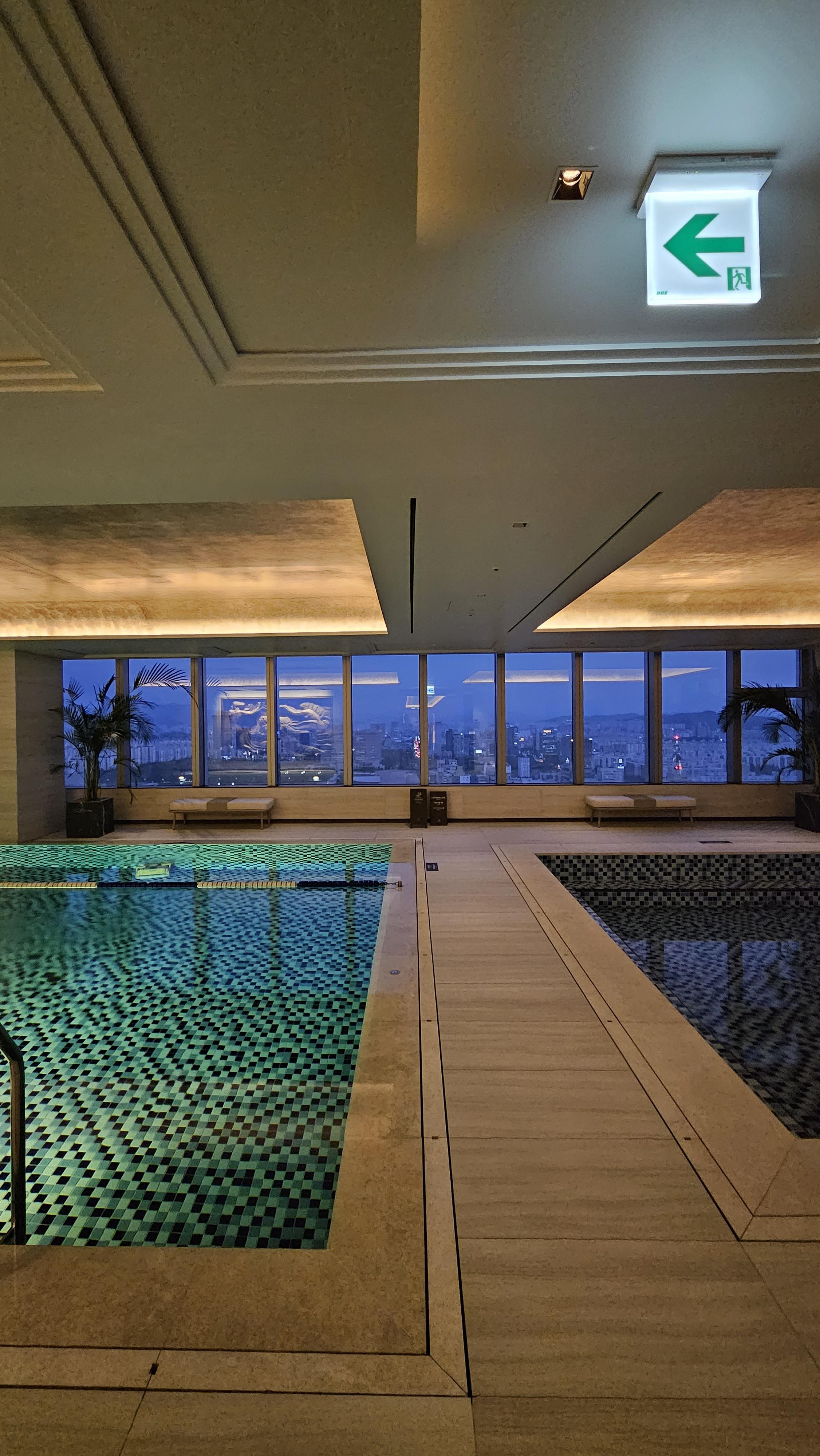 호텔 오노마 대전 오토그래프 컬렉션 수영장 (c) Haedie's Doodles 호텔 내부에는 피트니스센터와 수영장이 위치해 있습니다. 피트니스센터의 경우 상주하시는 직원이 매우 친절하게 다양한 운동을 가르쳐 주었으며 테크노짐의 기구들을 사용하고 있었습니다. 수영장의 경우 정기 점검으로 인해 들어가보지는 못했으나 저녁에 갑천을 바라보며 즐기는 수영이 꽤나 느낌있을 것으로 보입니다. 수영을 위한 레인이 1개, 물놀이를 즐기는 레인이 1개로 넓지는 않았지만 길이는 충분해 수영을 하기에 부족함이 없어 보였으며 한편에는 온탕이 있습니다. 선베드의 수는 대여섯개 정도로 많지는 않아보였습니다. ▲ 목차로 돌아가기