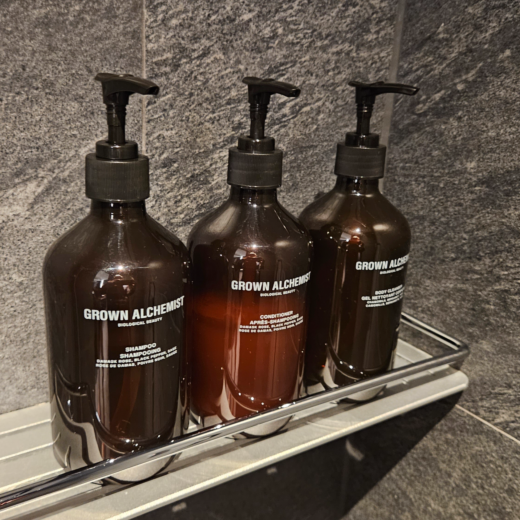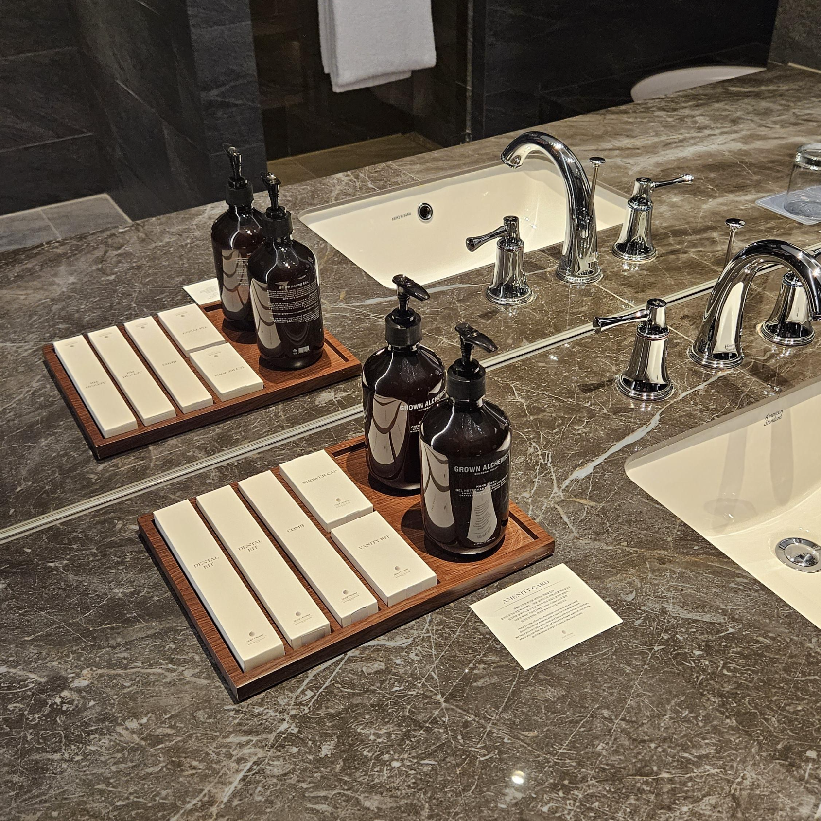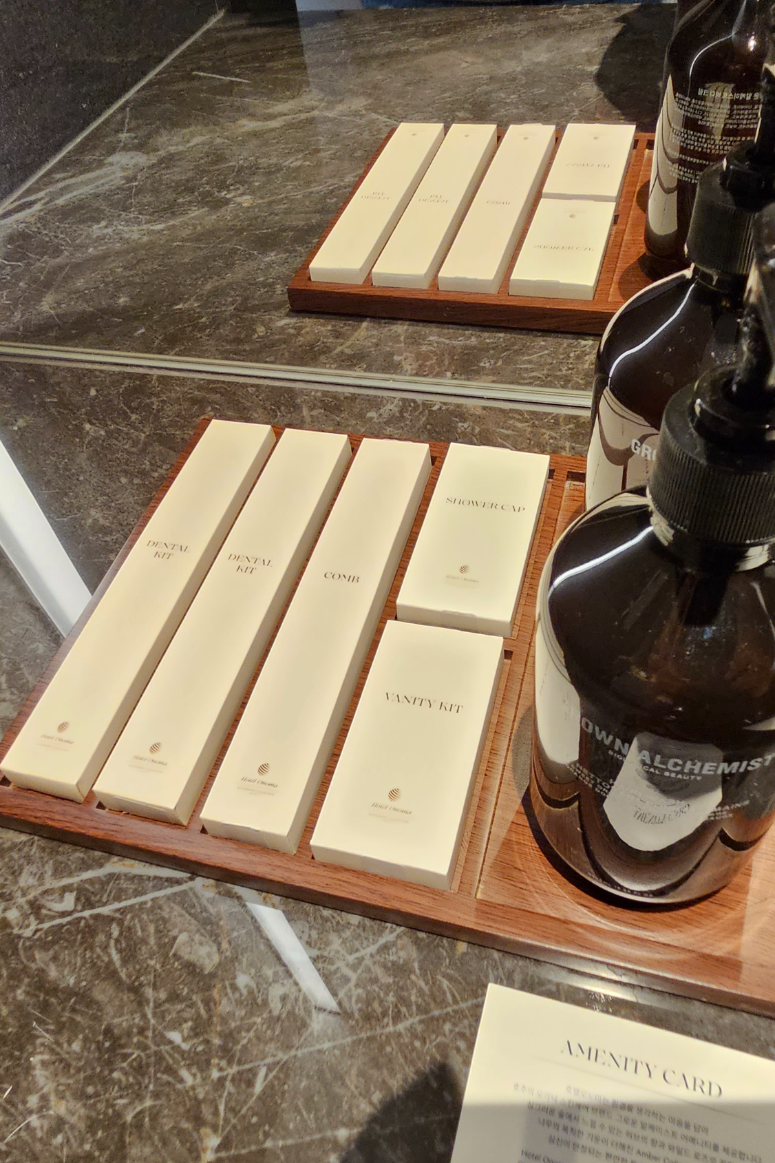 (c) Haedie's Doodles 호텔 오노마의 욕실 어매니티는 유기농 원료를 사용하고, 무독성, 비건, 동물실험을 하지 않는 제품으로 알려진 호주 브랜드인 그로운 알케미스트 제품이 대용량으로 제공됩니다. 그 외에도 나무로 만든 치약/칫솔과 빗, 샤워캡, 화장솜 등이 제공됩니다.
