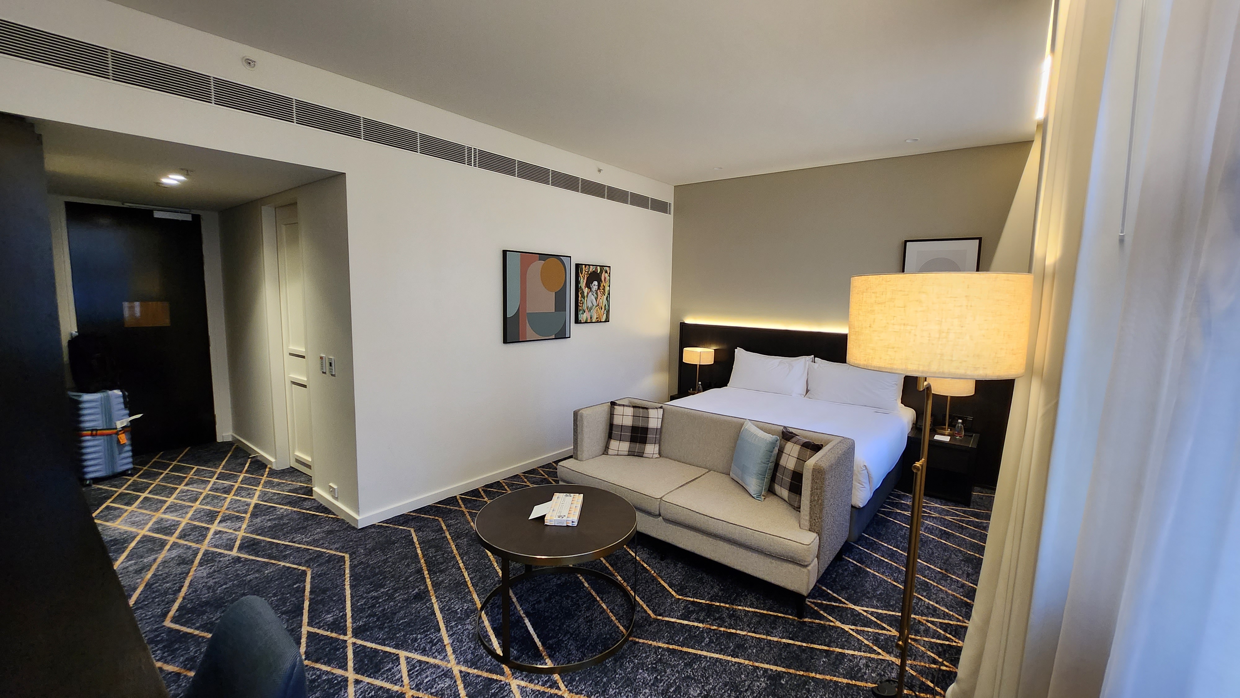 킴튼 마고 시드니 호텔의 로비 저는 가장 기본 룸 타입인 1 King Bed Essential로 예약했고, 숙박 며칠 전, 호텔 담당자의 이메일과 함께 티어 혜택으로 자동으로 1 King Bed Premium 타입으로 업그레이드가 되었다고 이메일을 받았습니다. 사실 주중숙박에다 룸타입이 다양했고, 호텔에서 사람들이 그렇게 많지 않았던 것으로 보아 Availability가 부족해 더 상위 등급으로 업그레이드를 해주지 않은 건 아닌 것 같고, 그냥 업그레이드에 후한 호텔이 아닌 느낌입니다5. 그래도 혼자 숙박에다가 프리미엄 룸은 40m2로 에센셜 룸 33m2에 비해 넉넉하기 때문에 그냥 그러려니 하고 넘어갑니다. 참고로 업그레이드를 잘 받기 위해서는 숙박 전에 GM이나 로열티 담당 매니저에게 이런저런 이메일을 보내보는 것이 좋습니다.