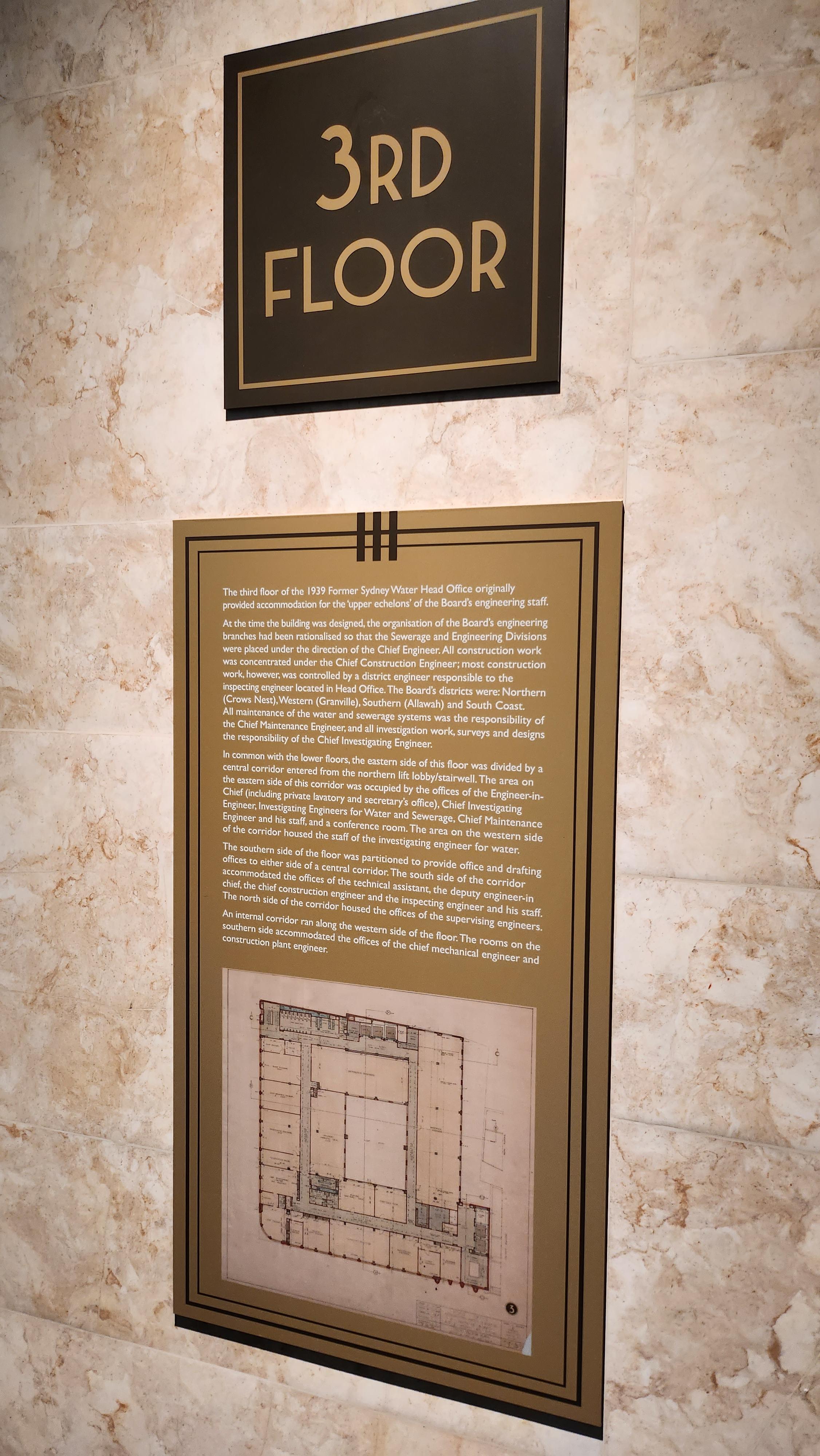 킴튼 마고 시드니의 엘리베이터 홀에서 찾을 수 있는 건물의 역사 방을 둘러보고 나서는 호텔을 둘러봅니다. 엘리베이터에서 내리게 되면 마주하는 각 층의 엘리베이터 홀에는 호텔로 레노베이션 되기 전, 해당 층의 설계도와 더불어 해당 층의 용도에 대한 안내문이 붙어있습니다. 별거 아닌 안내문일수도 있지만, 엘리베이터를 기다리면서 시간 때우는 용으로 읽기에도 좋고, 건물의 역사에 관심이 있는 분들에게 재밌는 흥밋거리를 던져줍니다. 이런 부분들이 호텔에 스토리를 부여해주고, 이런 스토리들이 모여 다른 호텔들은 흉내 낼 수 없는 킴튼 마고 시드니만의 차별성을 부여해주지 않을까 생각합니다.