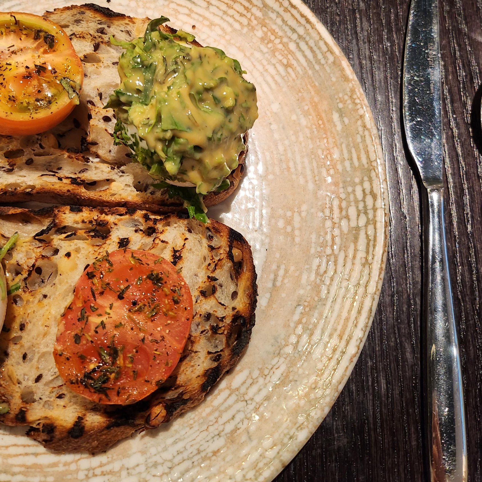 Roast Field Mushroom(좌), Smoked Salmon on Crumpet (가운데), Honey Mustard Herb Eggs(우) 첫날은 Roast Field Mushroom을 먹었습니다. 버섯의 풍미와 위에 뿌려진 잣의 풍미가 조화를 잘 이룹니다. 이와 더불어 크리미하게 만든 근대의 텍스쳐와 페타치즈의 고소함도 잘 어울립니다. 맛으로만 본다면 꽤 맛있지만, 비건 메뉴라 그런지 다 먹어도 먹었는지 위에 기별도 안가는 정도의 양이었습니다. 둘째날은, Smoked Salon on Crumpet을 먹었습니다. 연어도 비리지 않고 훈제향이 과하지 않은 맛있는 연어였고 페르시안 페타의 텍스처와 고소함이 연어와 크럼펫과 잘 어울렸습니다. 특히 몇개 없는 딜이 참 잘 어울리는 메뉴였습니다. 마지막 날에는 사실 연어를 한번 더 먹고 싶지만 새로운 메뉴에 도전해보기 위해 Honey Mustard Herb Eggs를 먹었습니다. 빵은 아마씨빵(Linseed bread)이었는데 건강빵 종류도 좋아하는 제게 꽤 맛있는 빵이었습니다. 뭐니뭐니해도 이 메뉴의 핵심은 허브가 버무려진 머스터드 안에 있는 수란인데, 에그 베네딕트와는 또 다른 재밌는 맛이었습니다. 저처럼 향이 강한 샐러리, 고수, 미나리와 같은 채소를 좋아하시는 분이라면 색다르게 즐길 수 있는 메뉴입니다.