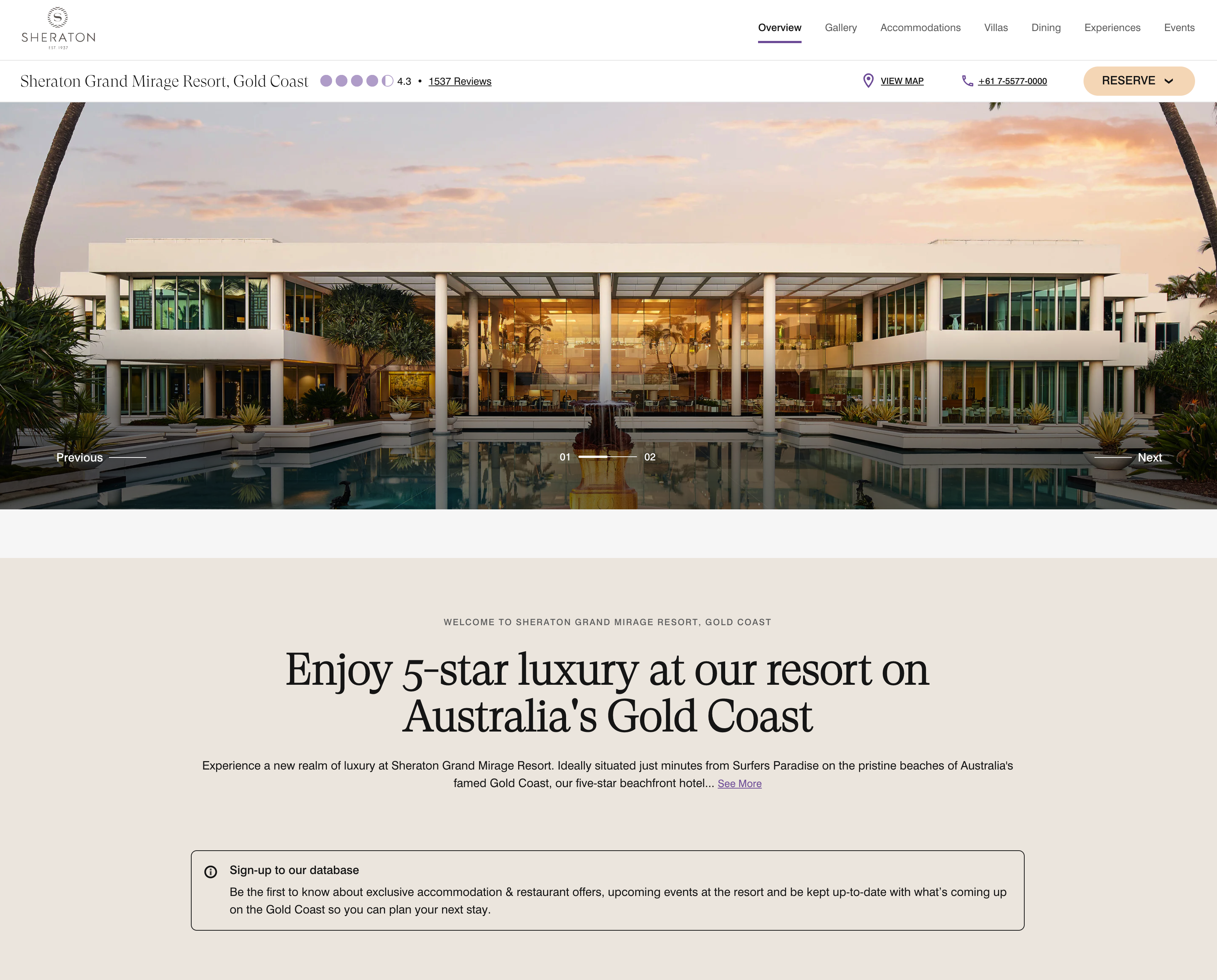 쉐라톤 그랜드 미라지 리조트 골드코스트의 웹사이트 (c) Marriott.com